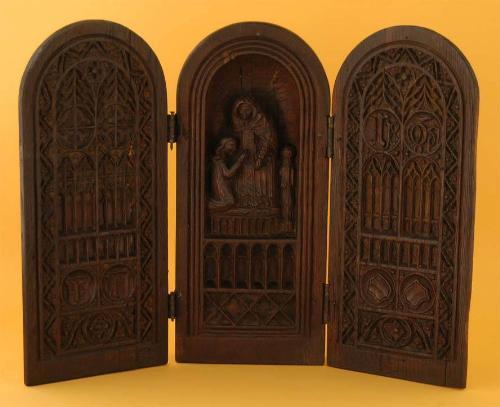 GOTHIC CARVED OAK TRYPTICH 22 1/2 high, each pane