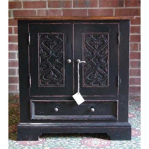 <tr><td>Title:GOTHIC RENAISSANCE BLACK PAINTED CREDENZA CHEST</td></tr>