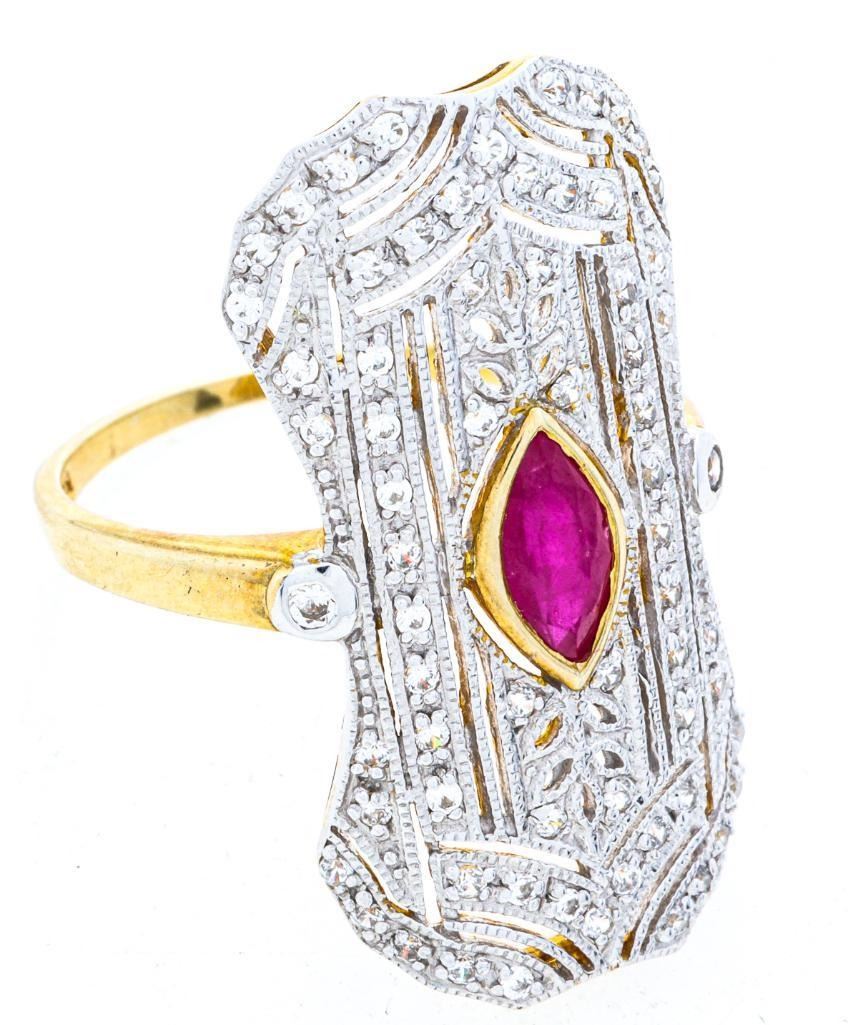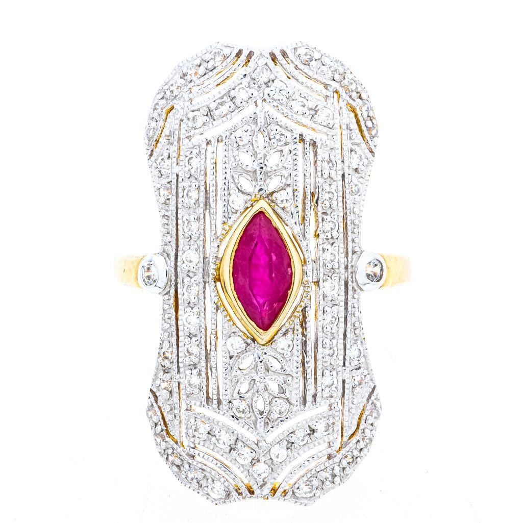 GP Sterling Silver Fancy Designer Ring, Marquis Ruby & CZ w/ Bead Setting