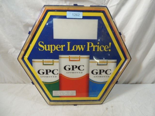 NICE CIGARETTE ADVERTISING SIGN IN PLEXIGLASS. OCTAGON SHAPE, MEASURES 21" ACROSS. AS SHOWN. EXCELLENT CONDITION.