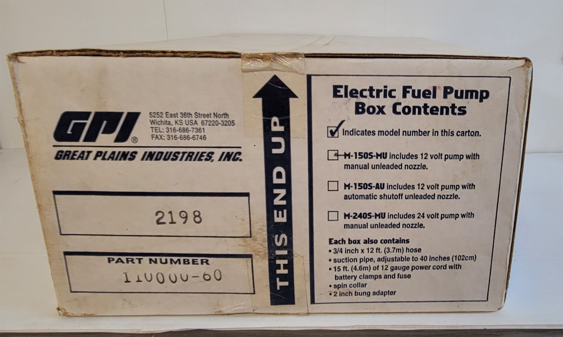 NOTE: MARKED 2198 - PART NUMBER 110000-60 - M-150S-MU - 12V - 2IN OPENING - 3/4IN X 12FT HOSE