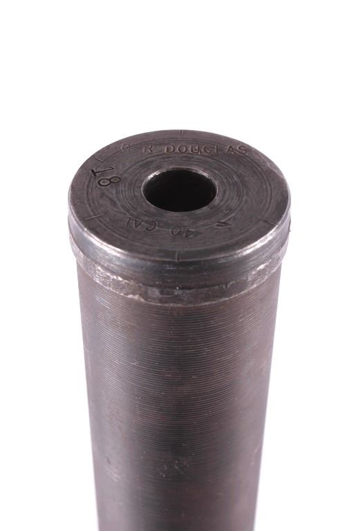 For your consideration is a steel 40 caliber 1/18 twist GR Douglas barrel blank. This large bored barrel has a 1/18 twist throughout the large steel round barrel. The bore caliber is stamped on the end reading 40 CAL. The end is also stamped GR Douglas. Lastly the end is stamped 18 for the bores twist rate of 1/18. The barrel blank measures approximately 31 ½” long.