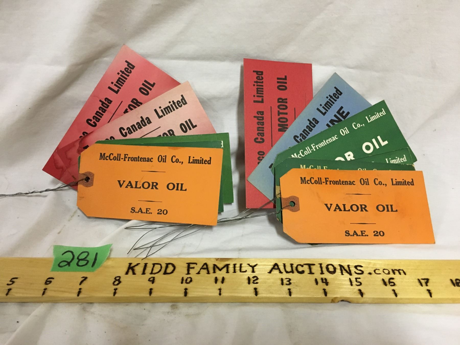 GR OF 11, CARDBOARD OIL TAGS, MCCOLL-FRONTENAC & TEXACO