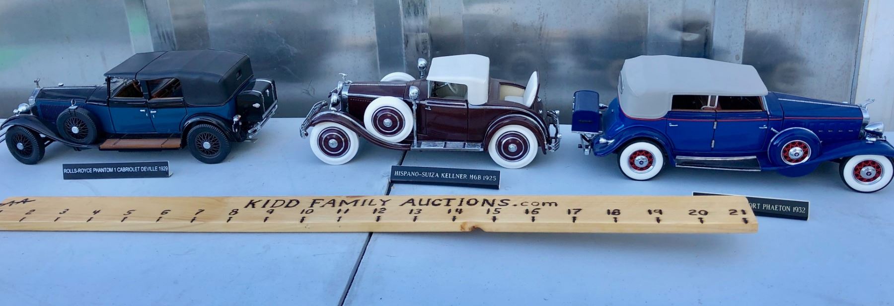 KIDD FAMILY AUCTIONS does not guarantee or make warranties on any lot sold. Ratings in the catalog are our opinion. We acknowledge that errors may occur although we endeavor to give you accurate information in what is written. We strongly recommend you personally view any item you bid on. KIDD FAMILY AUCTIONS cannot be held liable.