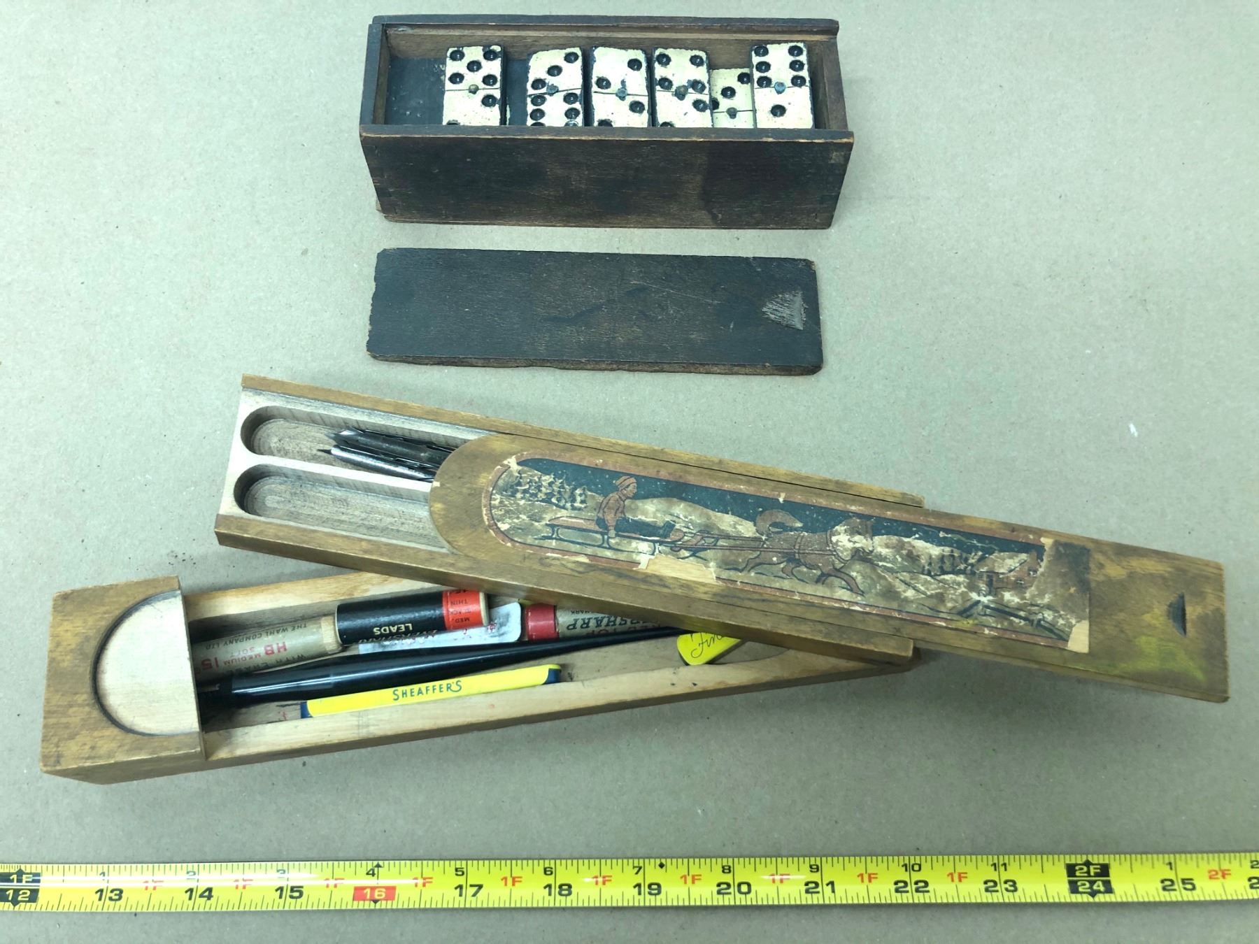 GR OF 2, ANTIQUE DOMINOES SET & FOUNTAIN PENS