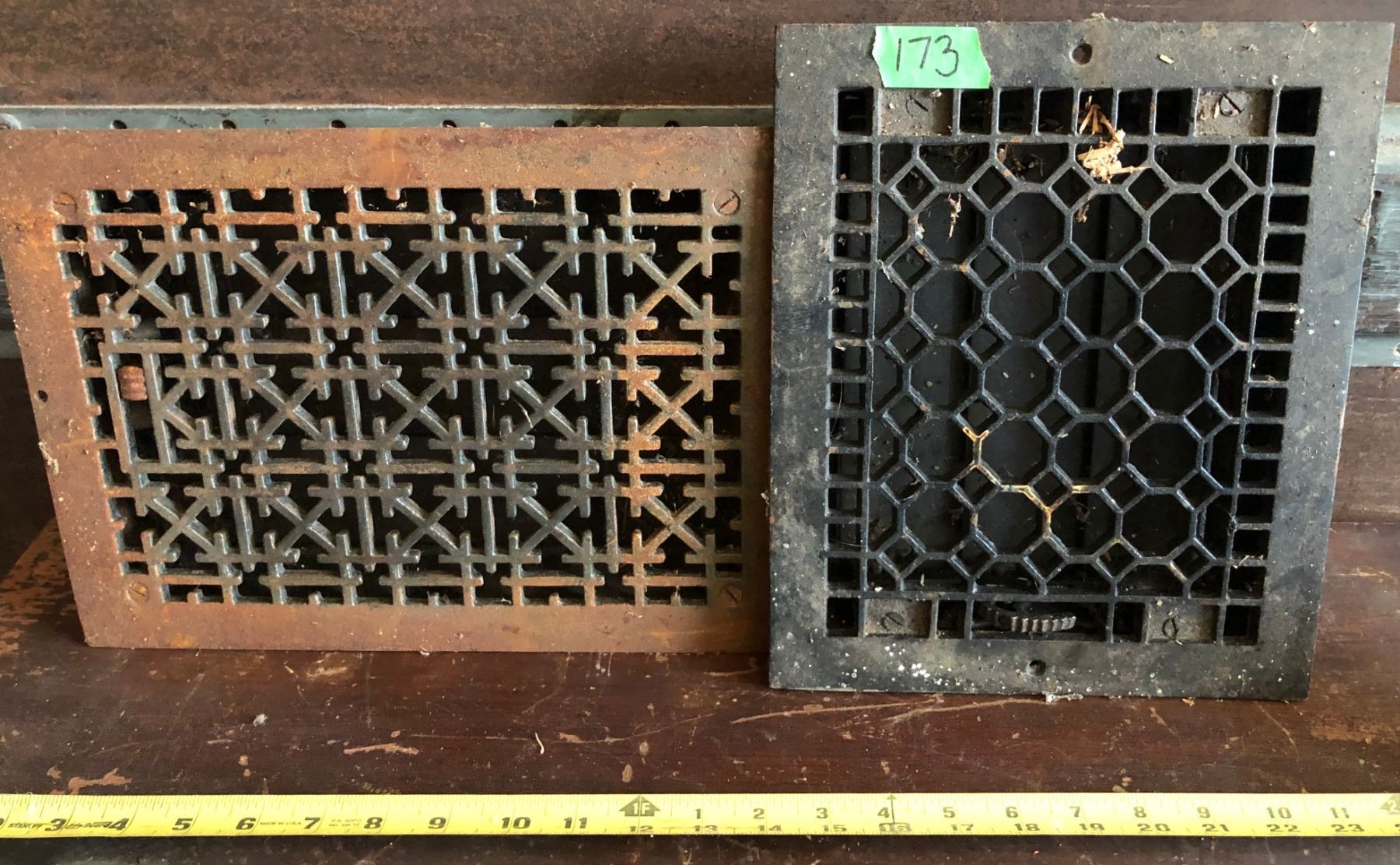 GR OF 2 ANTIQUE FLOOR GRATES WITH LOUVERS