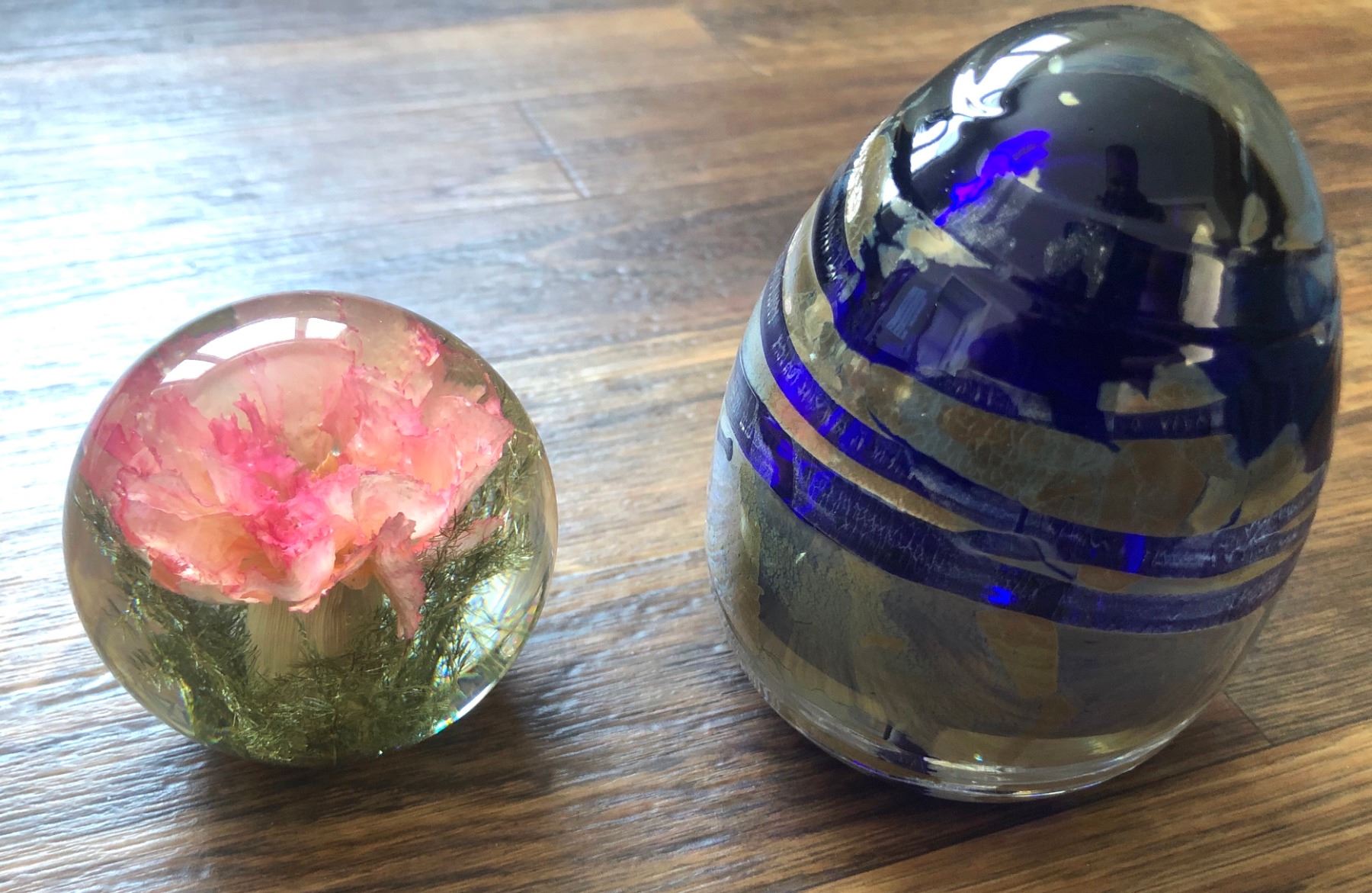 GR OF 2 BLOWN GLASS VINTAGE PAPER WEIGHTS - SIGNED. HAFOD GRANGE