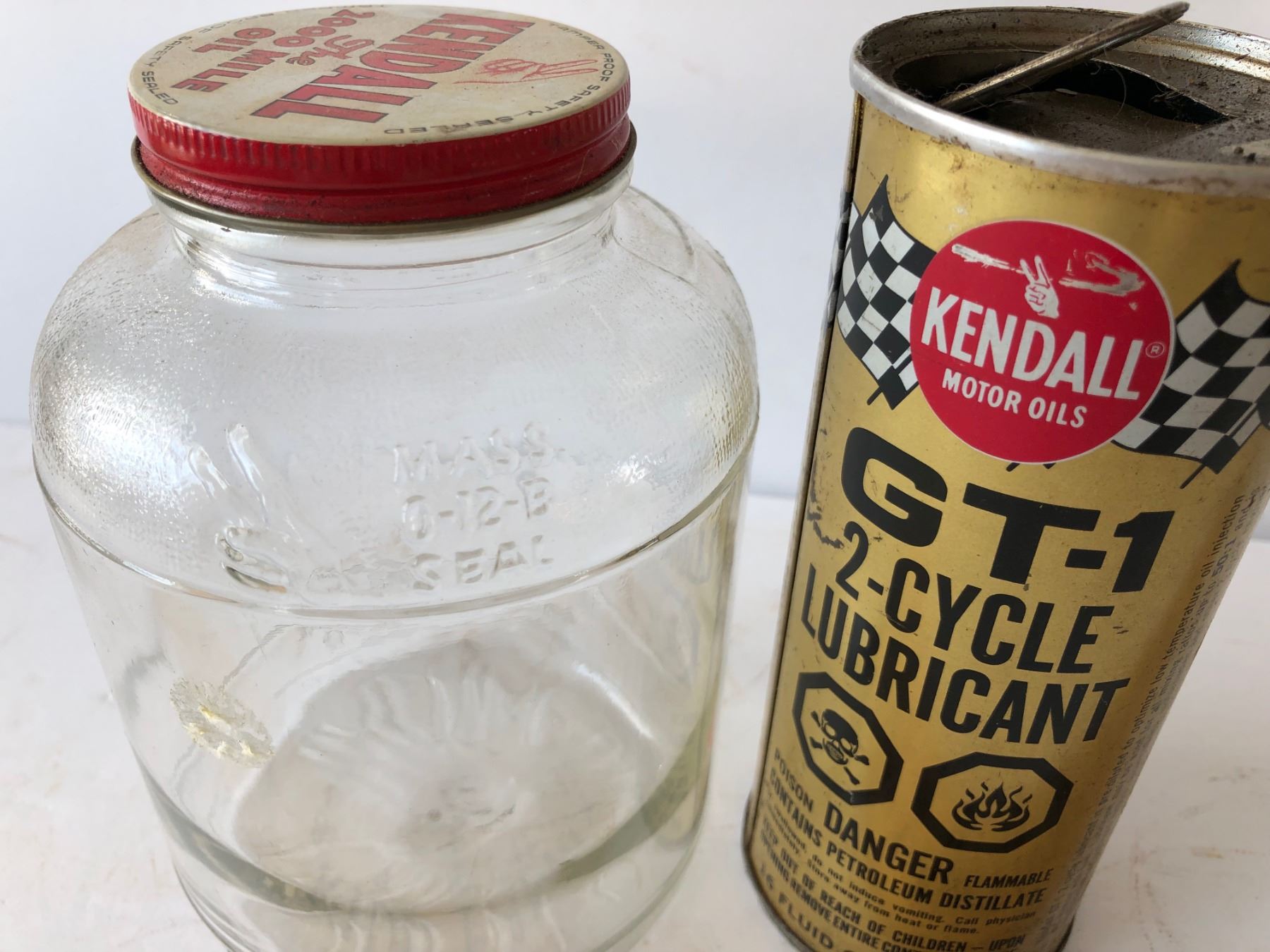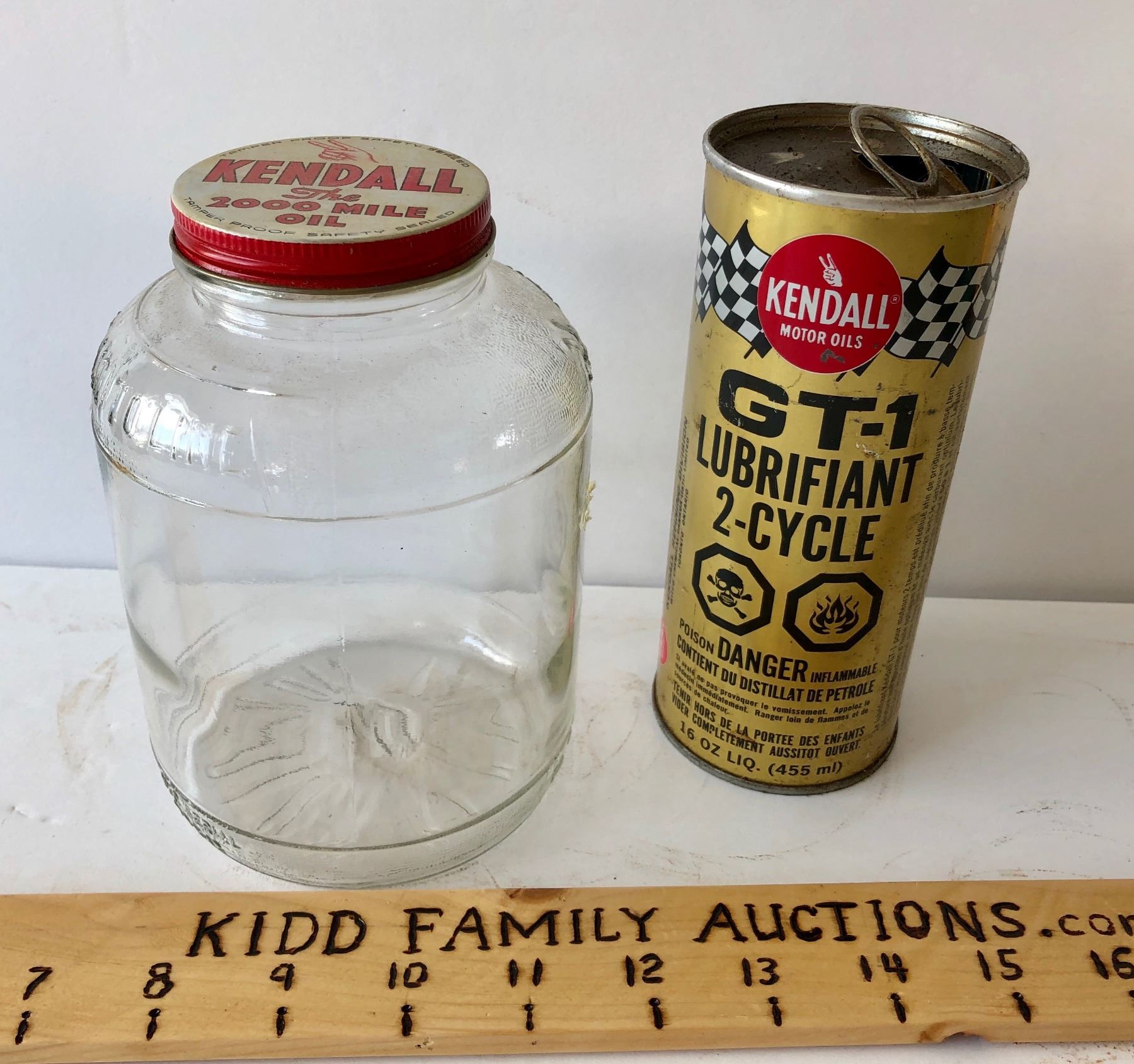 GR OF 2, KENDALL GLASS OIL BOTTLE & GT-1 LUBRICANT TIN