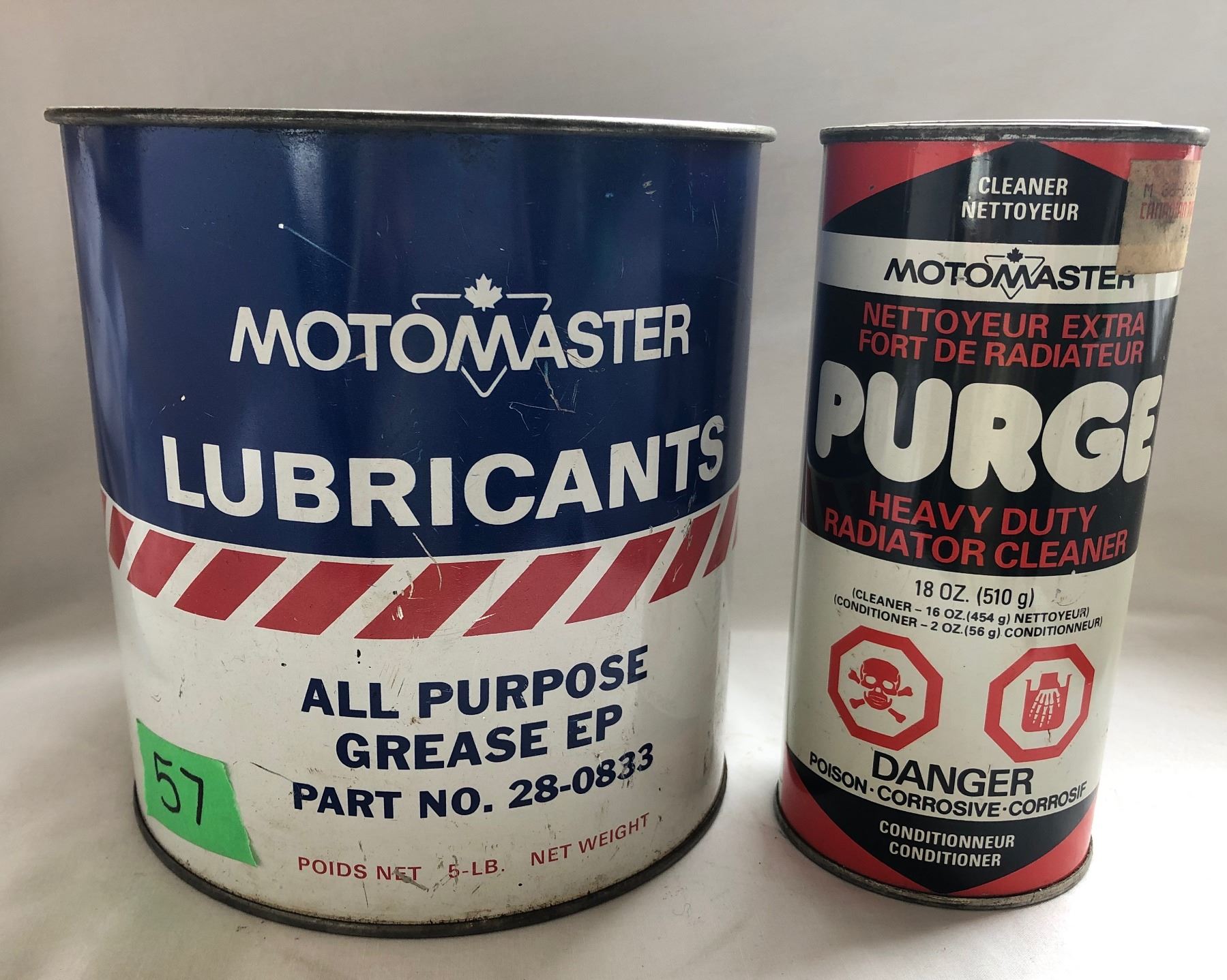 GR OF 2, MOTOMASTER TINS. 5 LBS GREASE & PURGE - FULL.