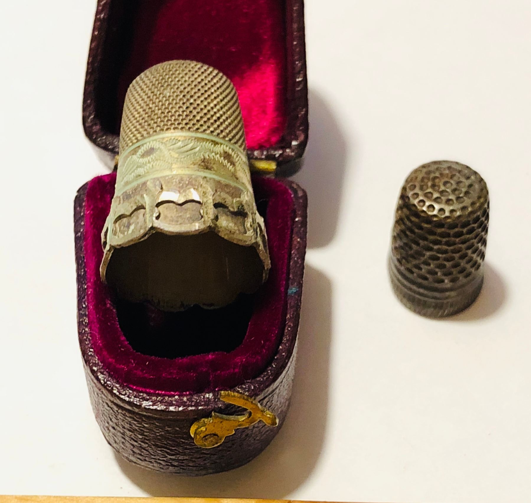 GR OF 2, SILVER THIMBLES WITH VELVET BOX