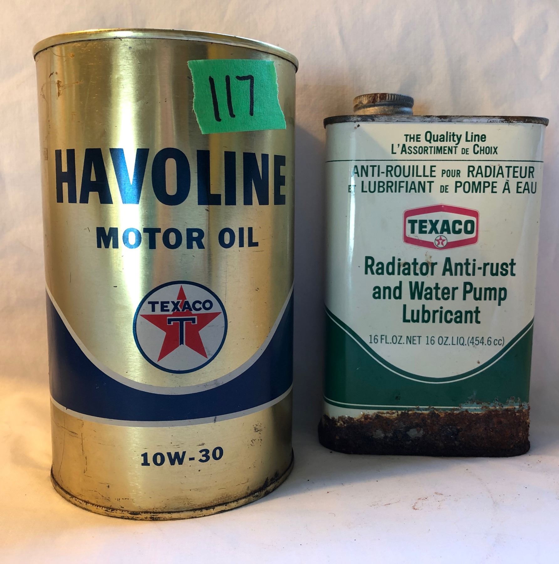 GR OF 2, TEXACO HAVOLINE QT TIN & 16 OZ RADIATOR FLUID TIN