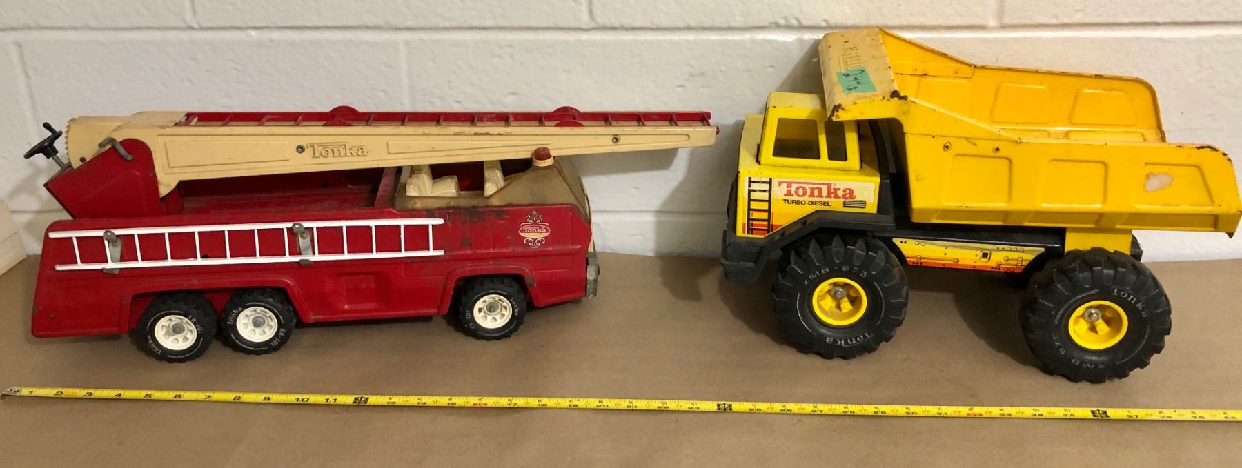 GR OF 2, TONKA DUMP TRUCK & FIRE TRUCK