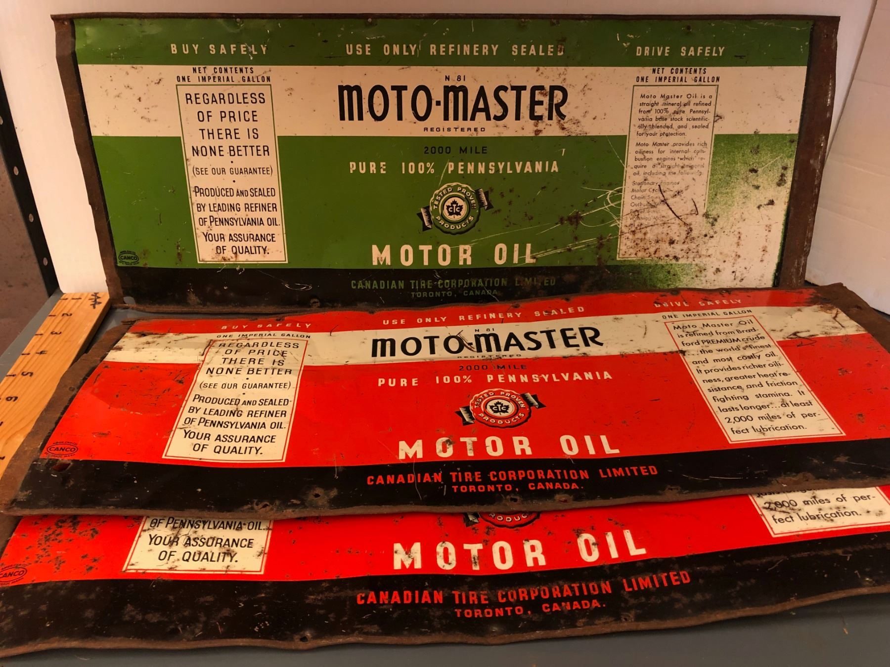 GR OF 3, FLATTENED MOTO-MASTER OIL CANS