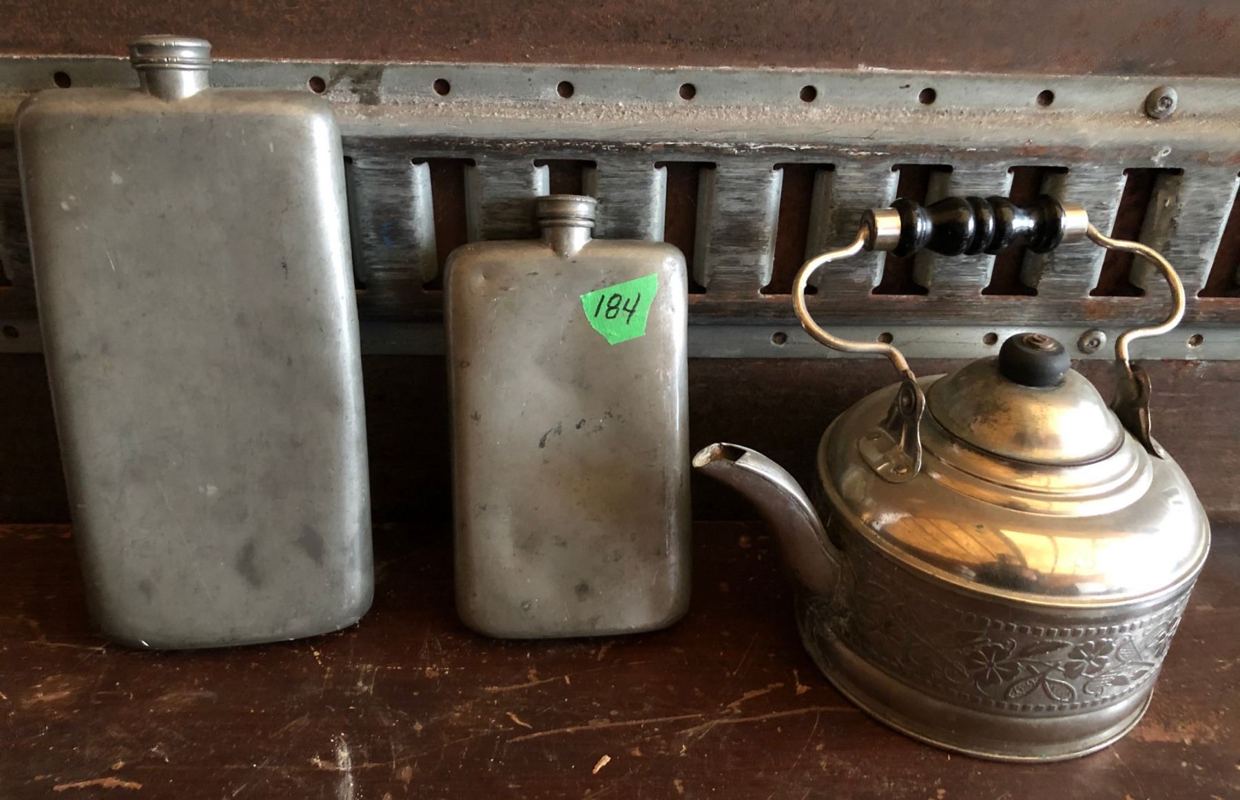 2 X SHEFFIELD FLASKS, KETTLE.