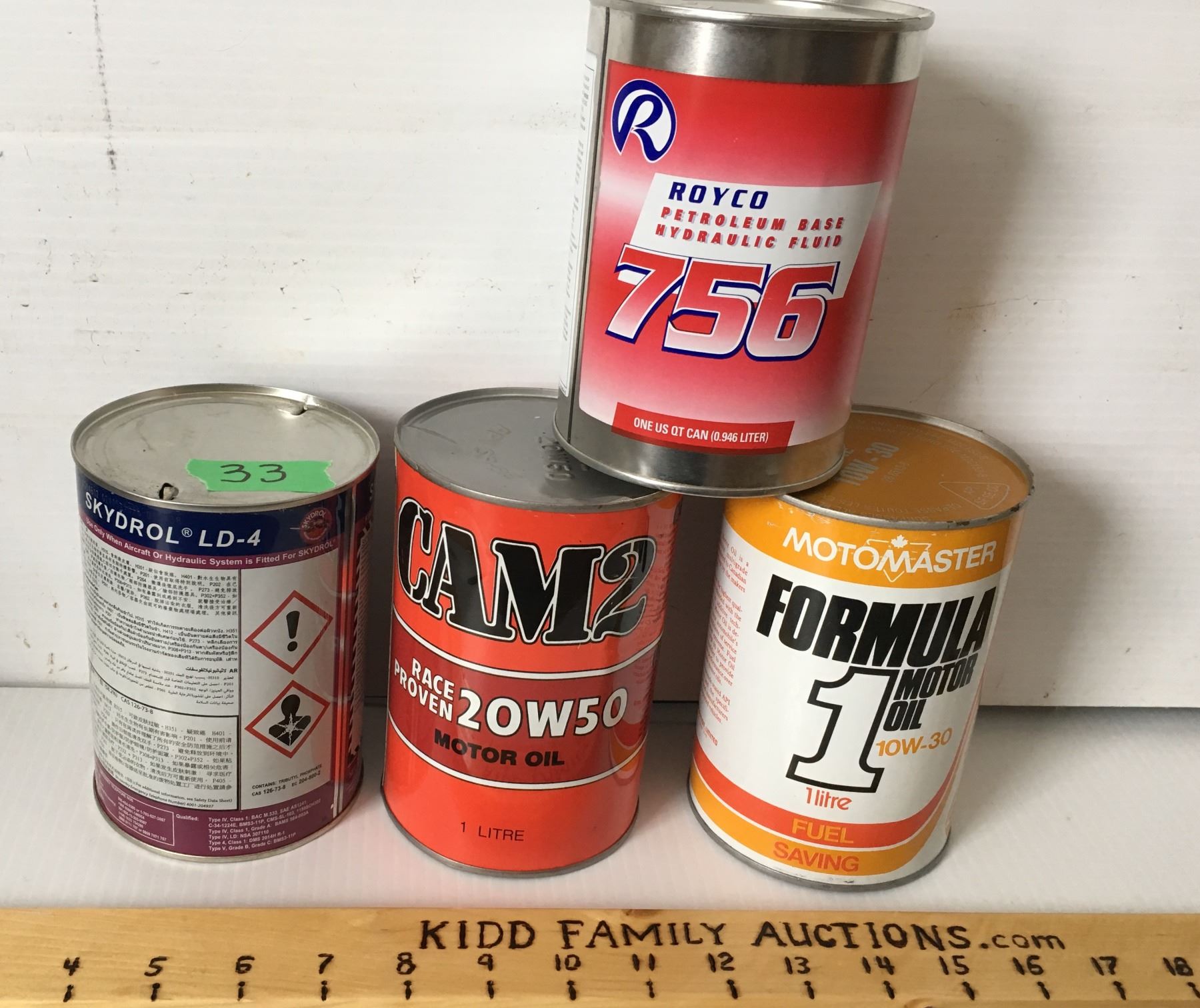 GR OF 4, SKYDROL, ROYCO, CAM2, MOTOMASTER - 1 LITRE / QT TIN CANS