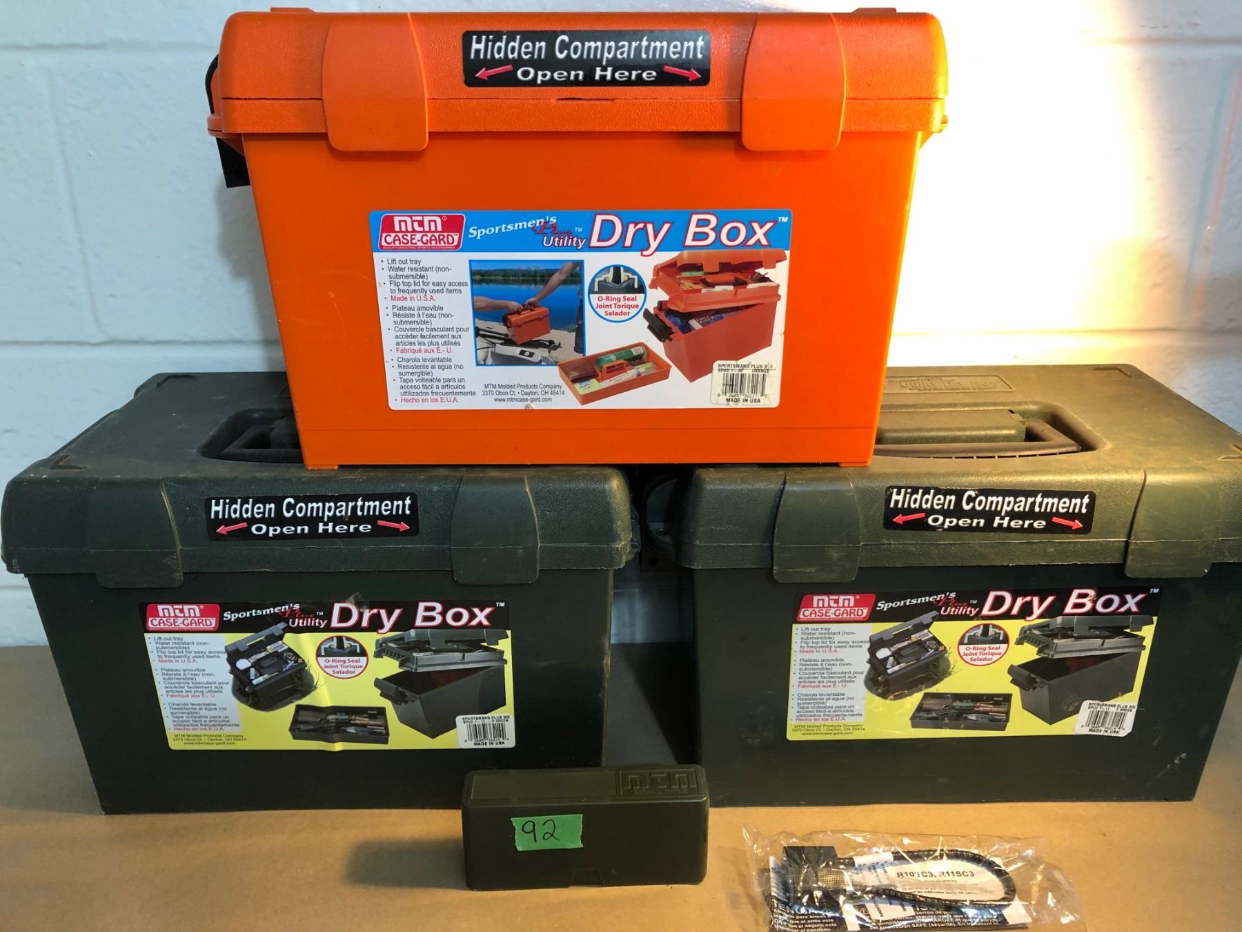 GR OF 5, CABLE LOCK - NEW, 3 X DRY BOXES, SM AMMO BOX.