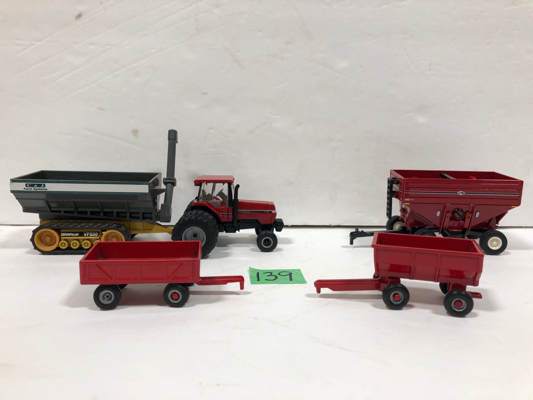 INCLUDES: INTERNATIONAL 7110 TRACTOR, CAT GRAIN BUGGY, J&M GRAVITY BOX, 2 X WAGONS.