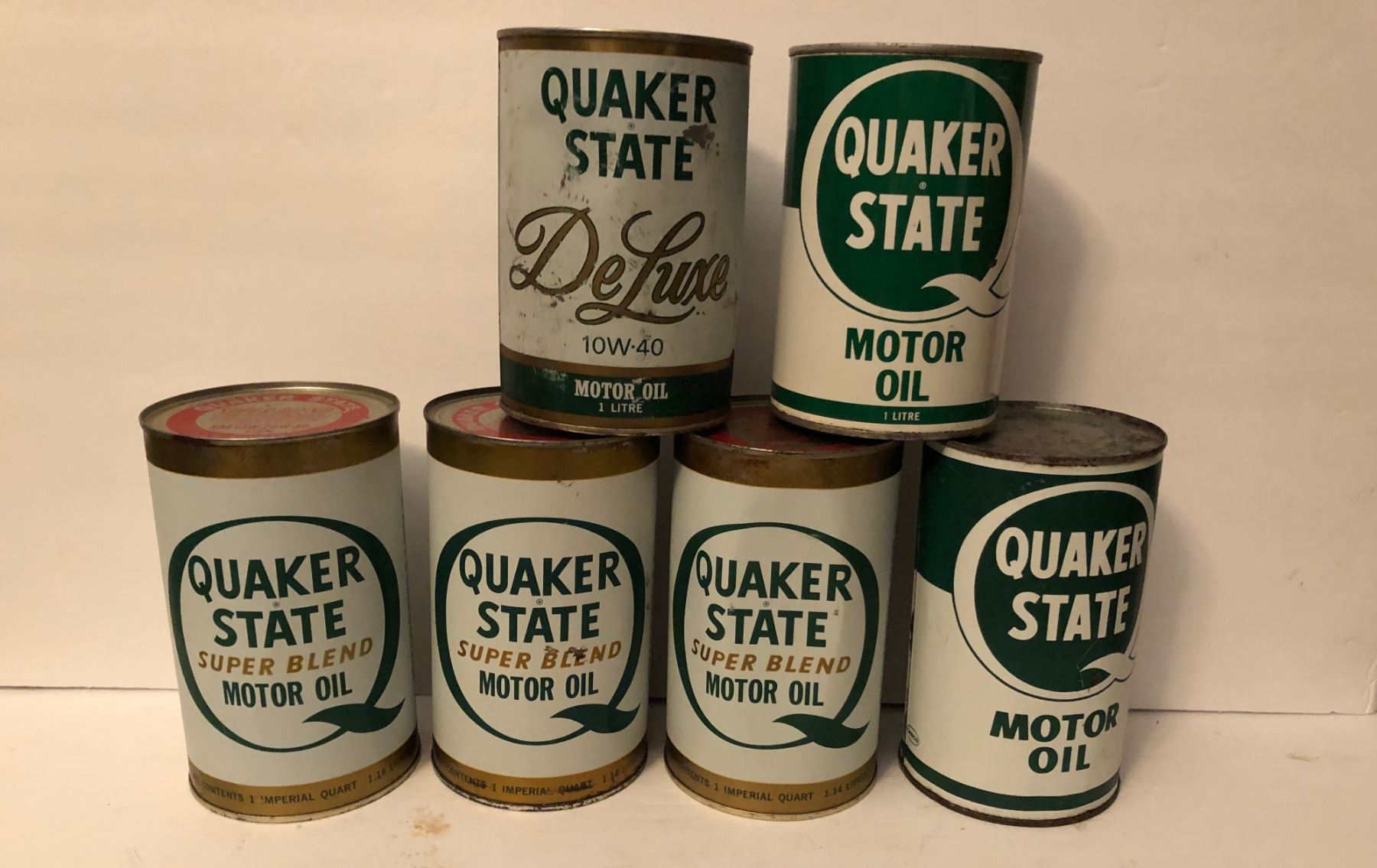 GR OF 6, QUAKER STATE MOTOR OIL CANS - SOME FULL