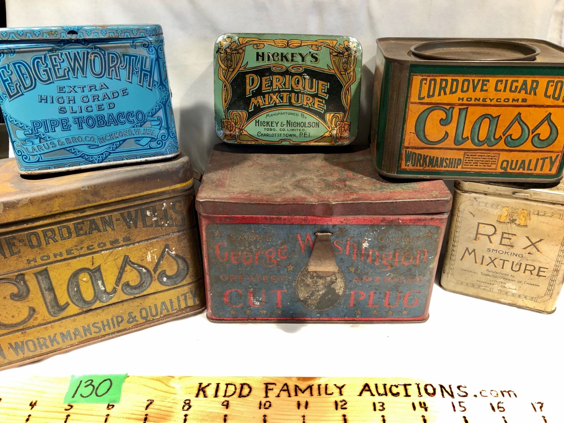 GR OF 6, TOBACCO TINS INCLUDING GEORGE WASHINGTON, REX, CLASS, HICKEY'S & EDGEWORTH