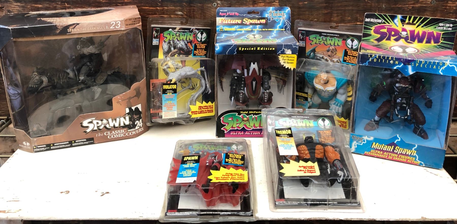 GR OF 7, VINTAGE SPAWN ACTION FIGURINES - AS NEW