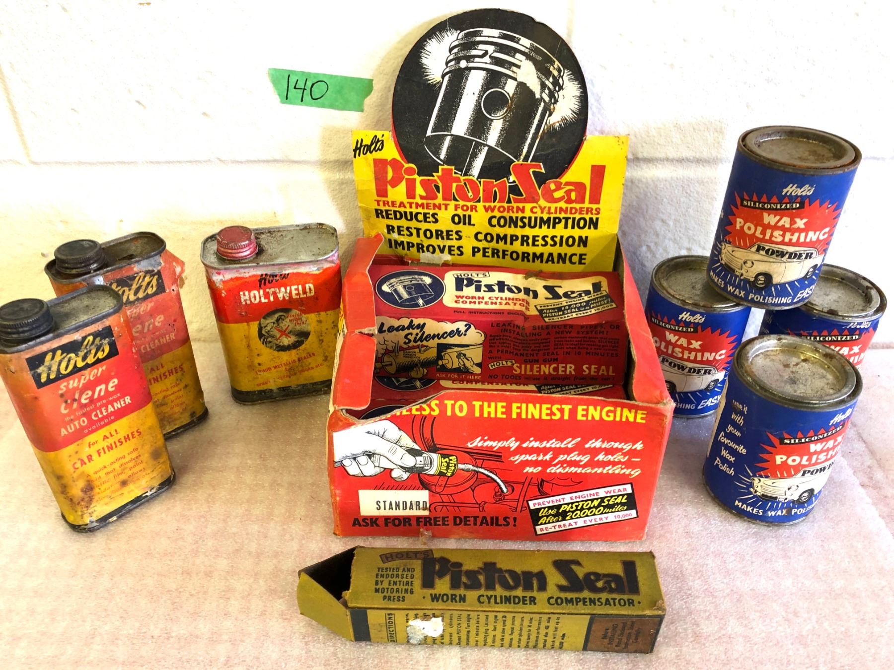 HOLT'S PISTON SEAL DISPLAY BOX W/ KITS. 4 X WAX POLISHING. 2 X CAR CLEANER. 1 X METAL SEALER. ETC.
