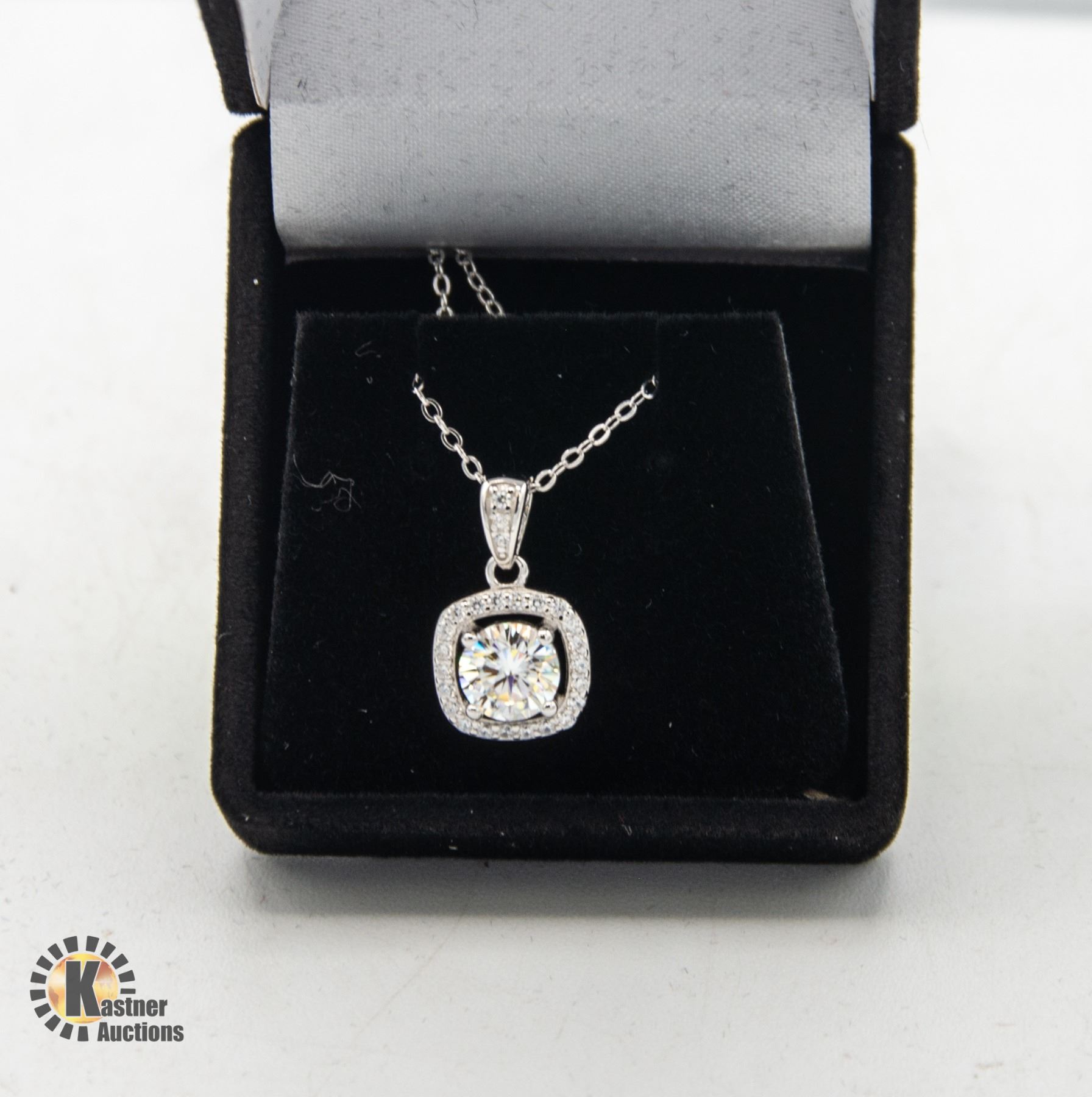WITH 22 CUBIC ZIRCONIUM SURROUNDING THE CENTER WITH 3 MORE IN THE BAIL ALL SET IN 925 STERLING SILVER APPRAISED VALUE $725.00 **ALL ITEMS MUST BE REMOVED BY 5PM SATURDAY, FEBRUARY 10TH 2024. ALL REMAINING ITEMS WILL BE SUBJECT TO A $6.00 PER DAY STORAGE CHARGE. ANY ITEMS REMAINING AFTER MONDAY, FEBRUARY 26TH, 2023 WILL BE CONSIDERED FORFEITED. NO REFUNDS WILL BE ISSUED FOR FORFEITED ITEMS. TO SCHEDULE A PICK UP APPOINTMENT CLICK HERE
