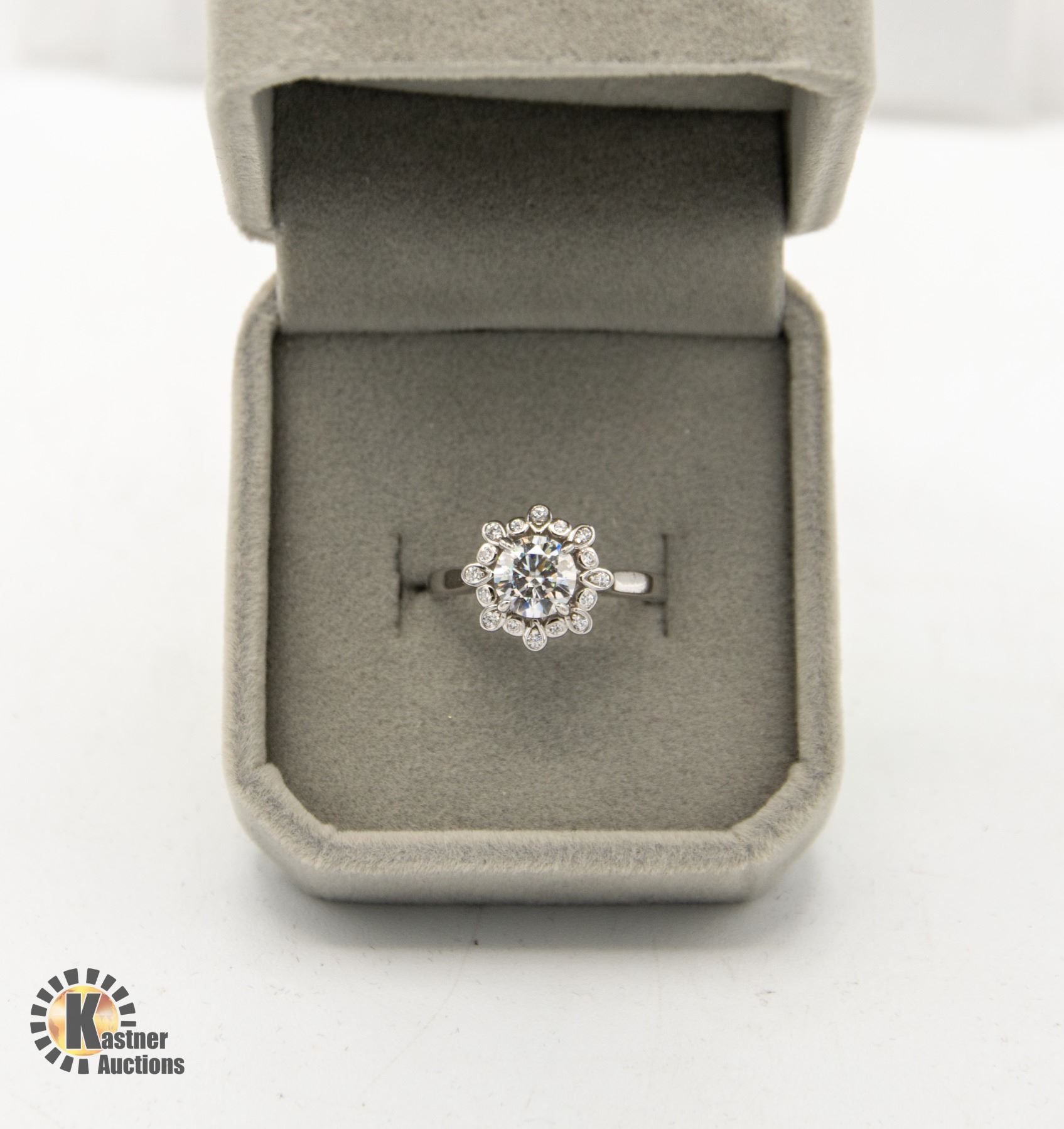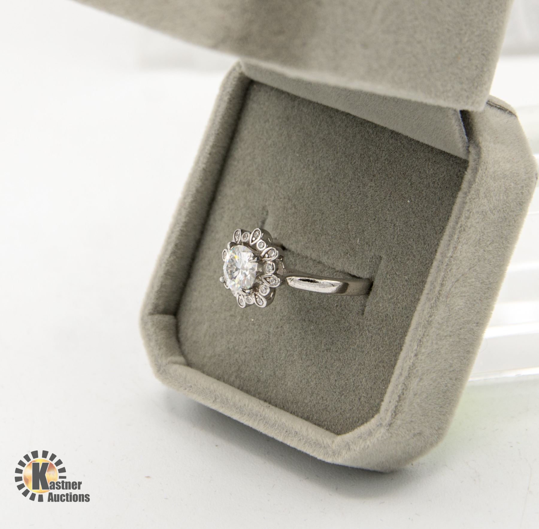 SET IN THE CENTER WITH 16 ROUND CUBIC ZIRCONIA SET IN STERLING SILVER SURROUNDING THE CENTER RING SIZE ADJUSTABLE **ALL ITEMS MUST BE REMOVED BY 5PM SATURDAY, FEBRUARY 24TH 2024. ALL REMAINING ITEMS WILL BE SUBJECT TO A $6.00 PER DAY STORAGE CHARGE. ANY ITEMS REMAINING AFTER MONDAY, MARCH 11TH, 2023 WILL BE CONSIDERED FORFEITED. NO REFUNDS WILL BE ISSUED FOR FORFEITED ITEMS. TO SCHEDULE A PICK UP APPOINTMENT CLICK HERE
