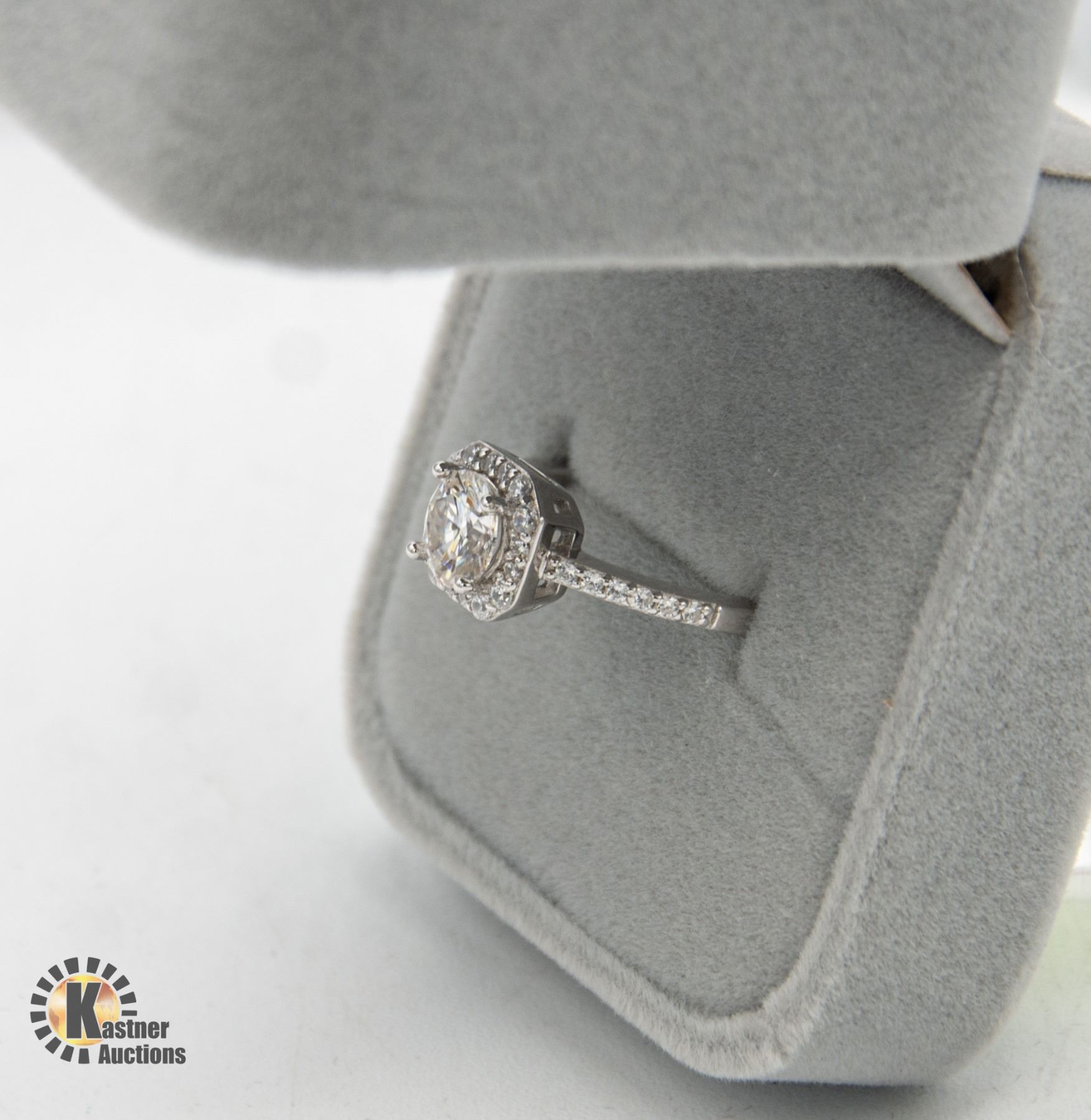 SILVER SURROUNDED BY A HALO OF 16 CUBIC ZIRCONIUM WITH 6 MORE IN EACH SHOULDER RING SIZE 6.5 APPRAISED VALUE $825.00 **ALL ITEMS MUST BE REMOVED BY 5PM SATURDAY, FEBRUARY 10TH 2024. ALL REMAINING ITEMS WILL BE SUBJECT TO A $6.00 PER DAY STORAGE CHARGE. ANY ITEMS REMAINING AFTER MONDAY, FEBRUARY 26TH, 2023 WILL BE CONSIDERED FORFEITED. NO REFUNDS WILL BE ISSUED FOR FORFEITED ITEMS. TO SCHEDULE A PICK UP APPOINTMENT CLICK HERE