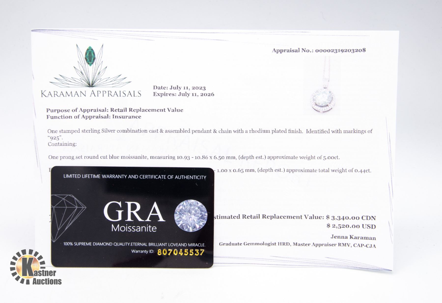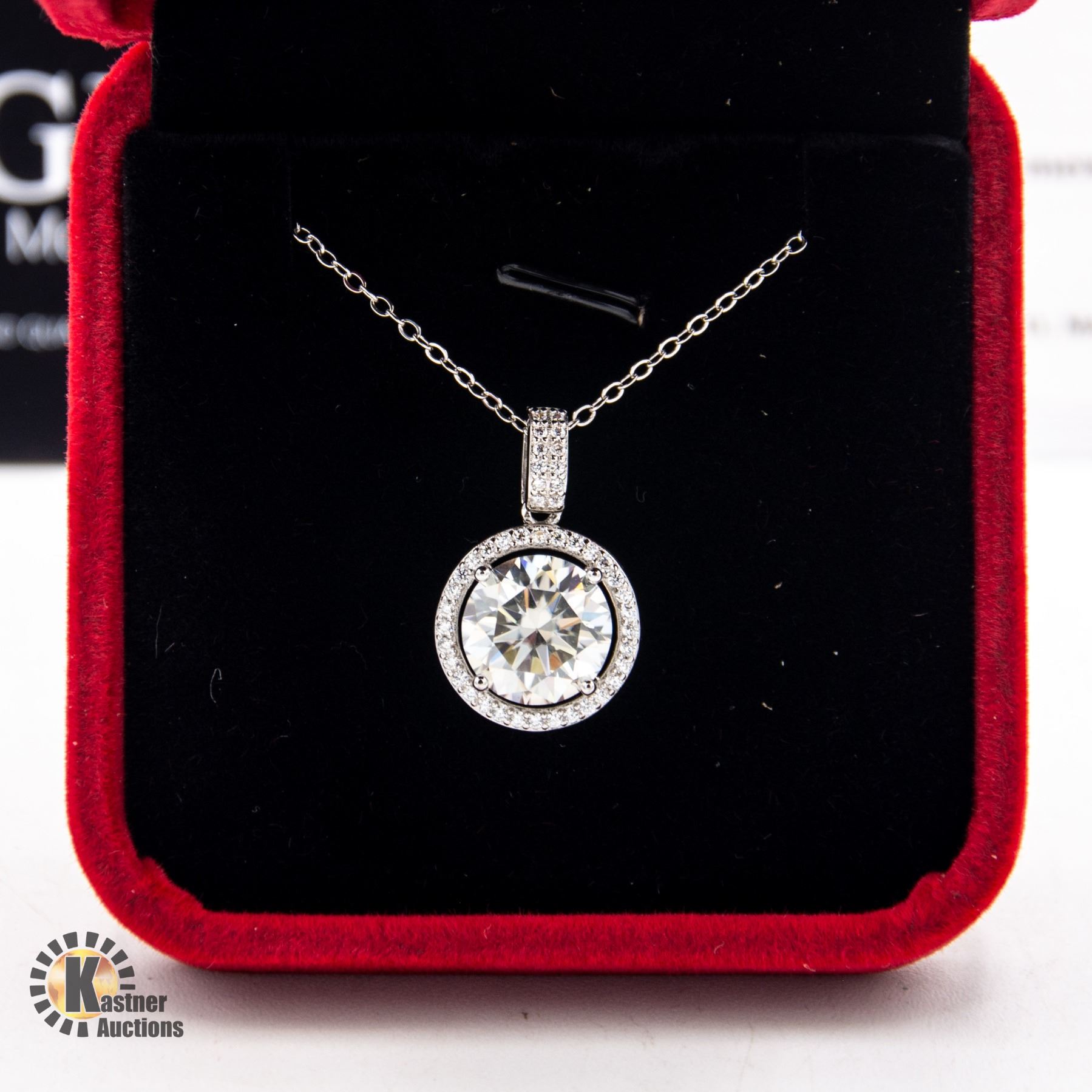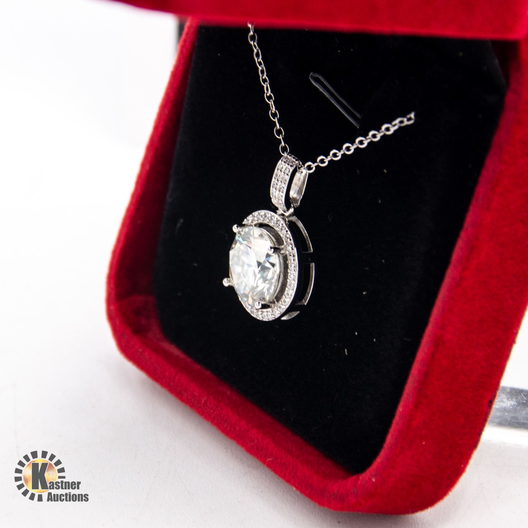 SURROUNDED BY HALO OF 44 MOISSANITE INCLUDING SOME SET IN BAIL SET IN SILVER PENDANT AND NECKLACE APPRAISED VALUE $3,340.00 **ALL ITEMS MUST BE REMOVED BY 5PM SATURDAY, DECEMBER 16TH 2023. ALL REMAINING ITEMS WILL BE SUBJECT TO A $6.00 PER DAY STORAGE CHARGE. ANY ITEMS REMAINING AFTER TUESDAY, JANUARY 2ND 2023 WILL BE CONSIDERED FORFEITED. NO REFUNDS WILL BE ISSUED FOR FORFEITED ITEMS. TO SCHEDULE A PICK UP APPOINTMENT CLICK HERE