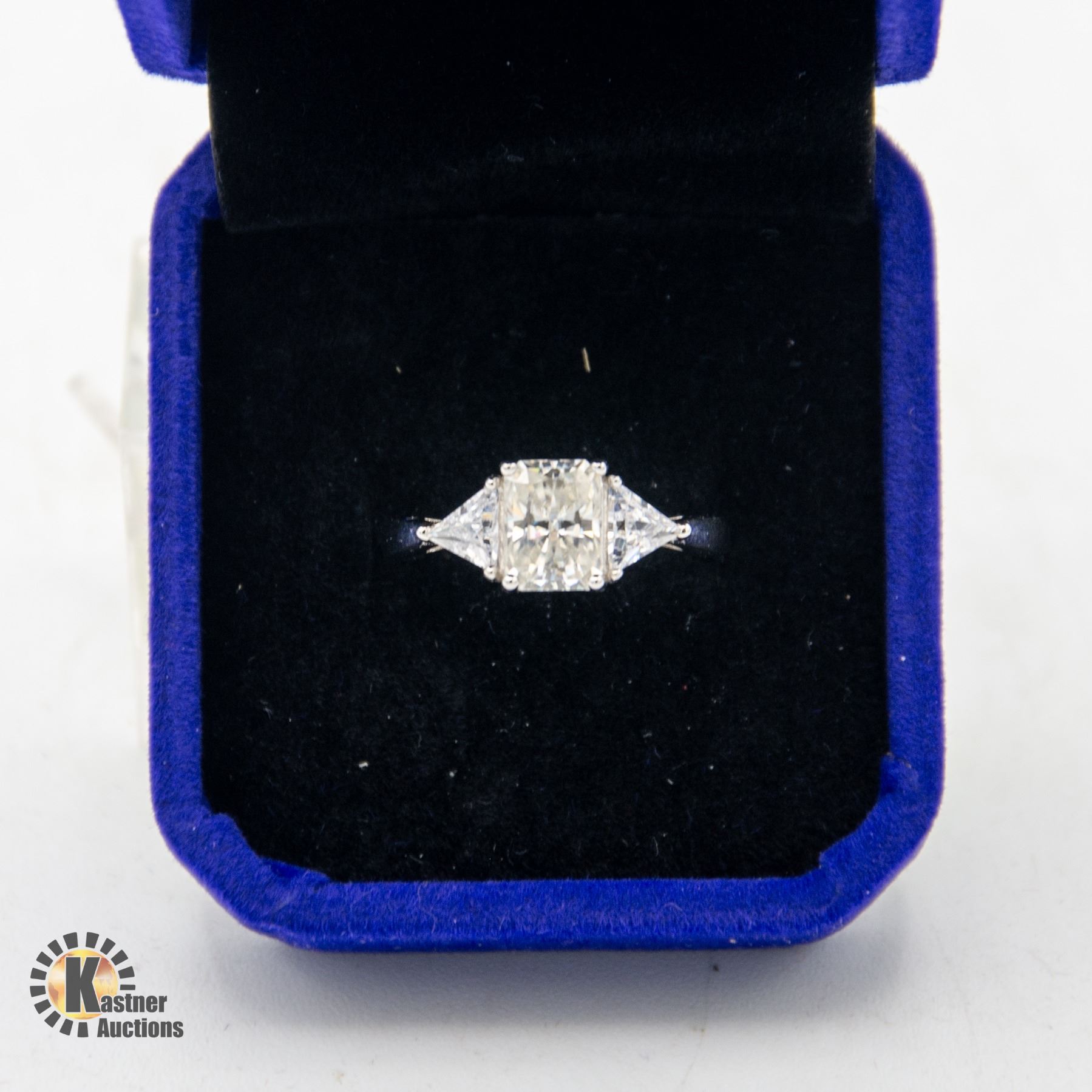 2.00 CARAT WITH 2 TRIANGULAR CUT CUBIC ZIRCONIUM WEIGHING A TOTAL 1.00 CARAT RING SIZE 7.75 APPRAISED VALUE $1,450.00 **ALL ITEMS MUST BE REMOVED BY 5PM SATURDAY, DECEMBER 16TH 2023. ALL REMAINING ITEMS WILL BE SUBJECT TO A $6.00 PER DAY STORAGE CHARGE. ANY ITEMS REMAINING AFTER TUESDAY, JANUARY 2ND 2023 WILL BE CONSIDERED FORFEITED. NO REFUNDS WILL BE ISSUED FOR FORFEITED ITEMS. TO SCHEDULE A PICK UP APPOINTMENT CLICK HERE