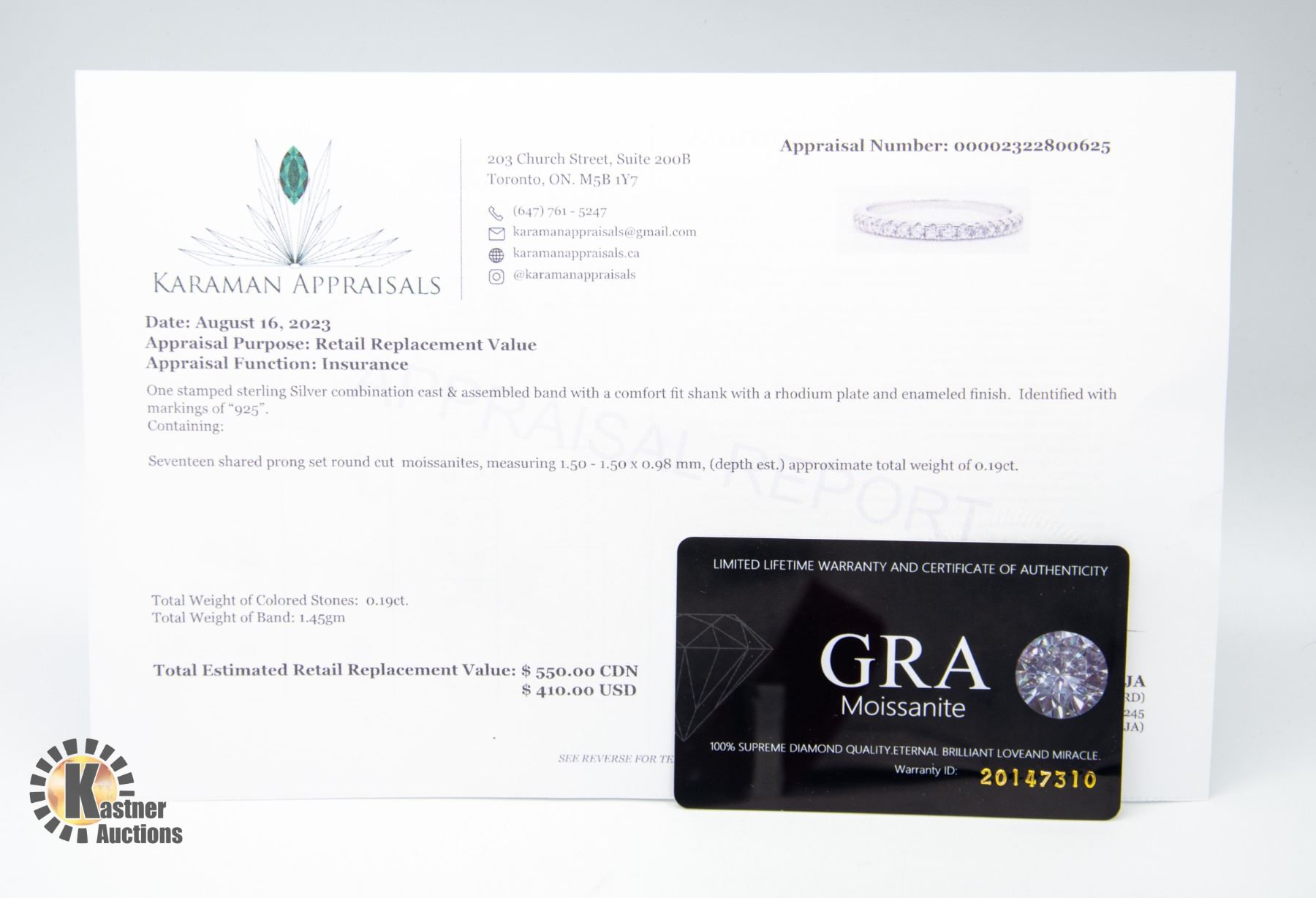 17 MOISSANITES WEIGHING A TOTAL 0.19 CARATS RING SIZE 8 APPRAISED VALUE $550.00 **ALL ITEMS MUST BE REMOVED BY 5PM SATURDAY, DECEMBER 30TH 2023. ALL REMAINING ITEMS WILL BE SUBJECT TO A $6.00 PER DAY STORAGE CHARGE. ANY ITEMS REMAINING AFTER MONDAY, JANUARY 8TH, 2023 WILL BE CONSIDERED FORFEITED. NO REFUNDS WILL BE ISSUED FOR FORFEITED ITEMS. TO SCHEDULE A PICK UP APPOINTMENT CLICK HERE