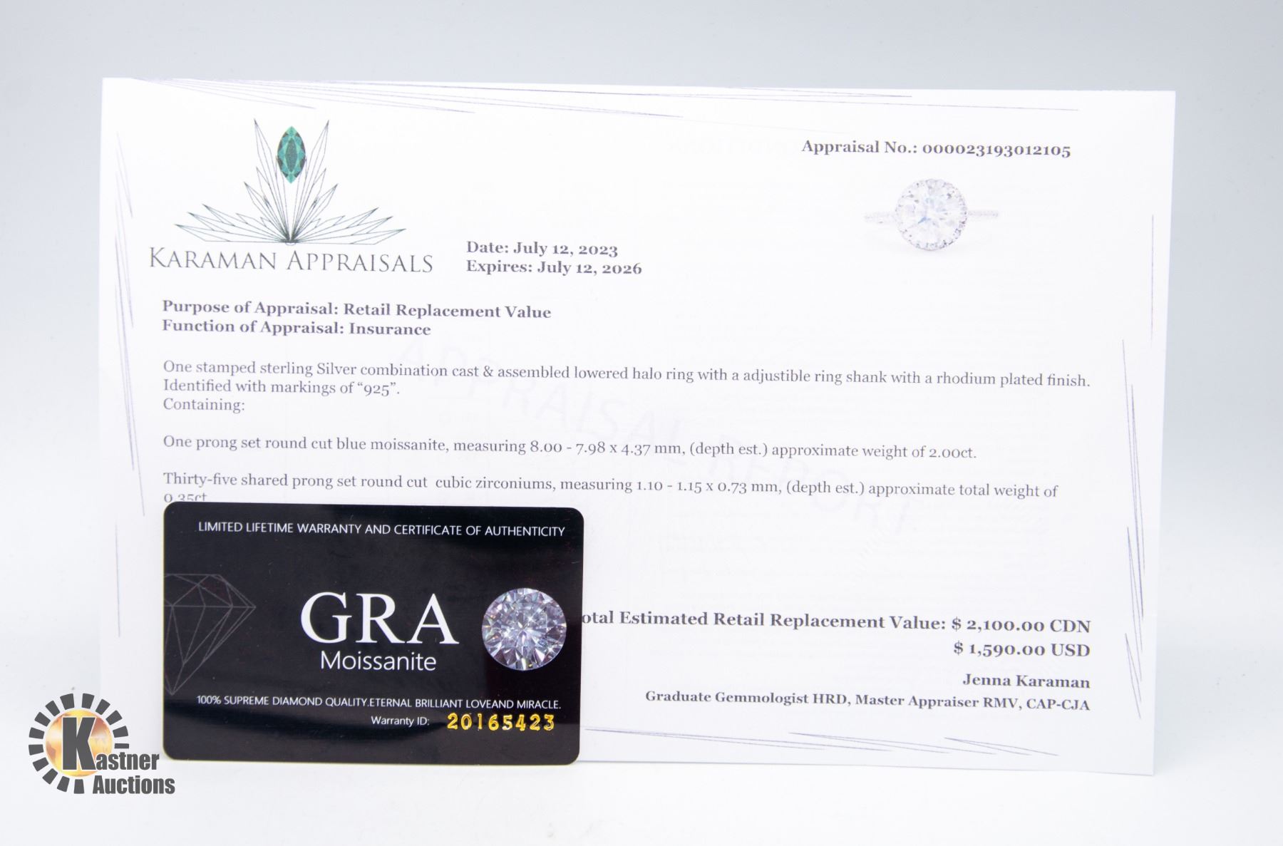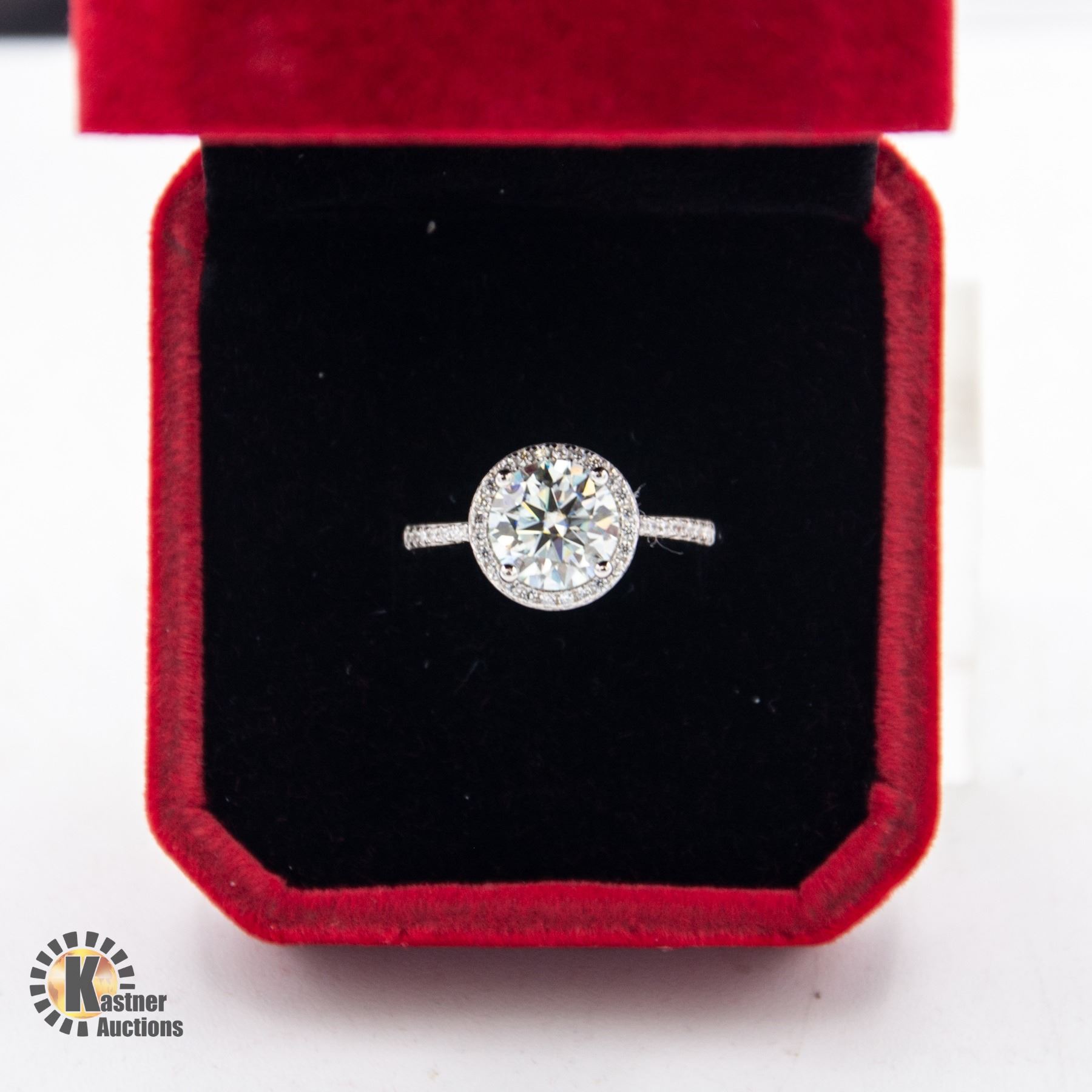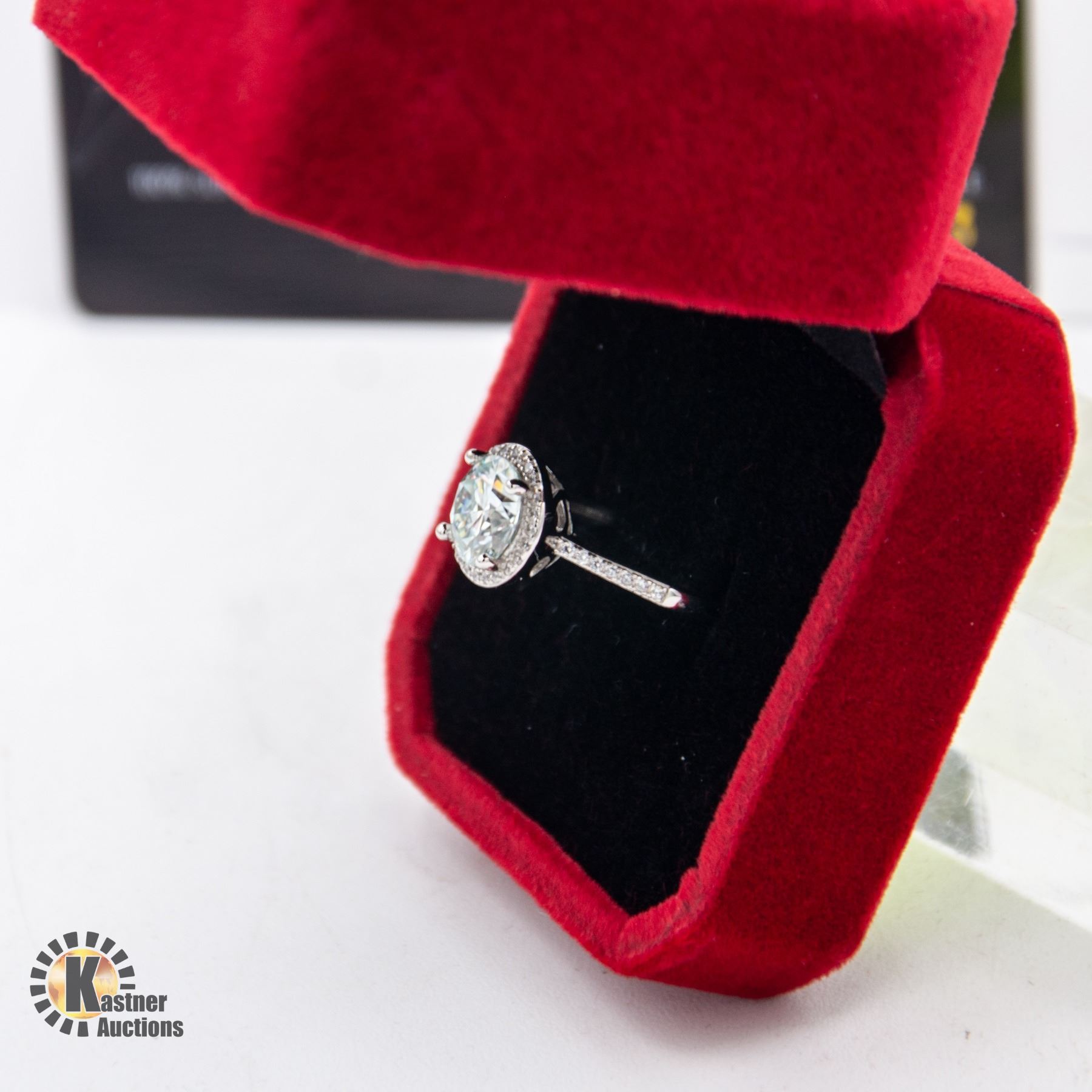 SET IN 925 SILVER WITH 34 CUBIC ZIRCONIUM IN HALO AND WITH MORE IN SHANK OF RING. RING SIZE ADJUSTABLE APPRAISED VALUE $2,100.00 **ALL ITEMS MUST BE REMOVED BY 5PM SATURDAY, DECEMBER 16TH 2023. ALL REMAINING ITEMS WILL BE SUBJECT TO A $6.00 PER DAY STORAGE CHARGE. ANY ITEMS REMAINING AFTER TUESDAY, JANUARY 2ND 2023 WILL BE CONSIDERED FORFEITED. NO REFUNDS WILL BE ISSUED FOR FORFEITED ITEMS. TO SCHEDULE A PICK UP APPOINTMENT CLICK HERE
