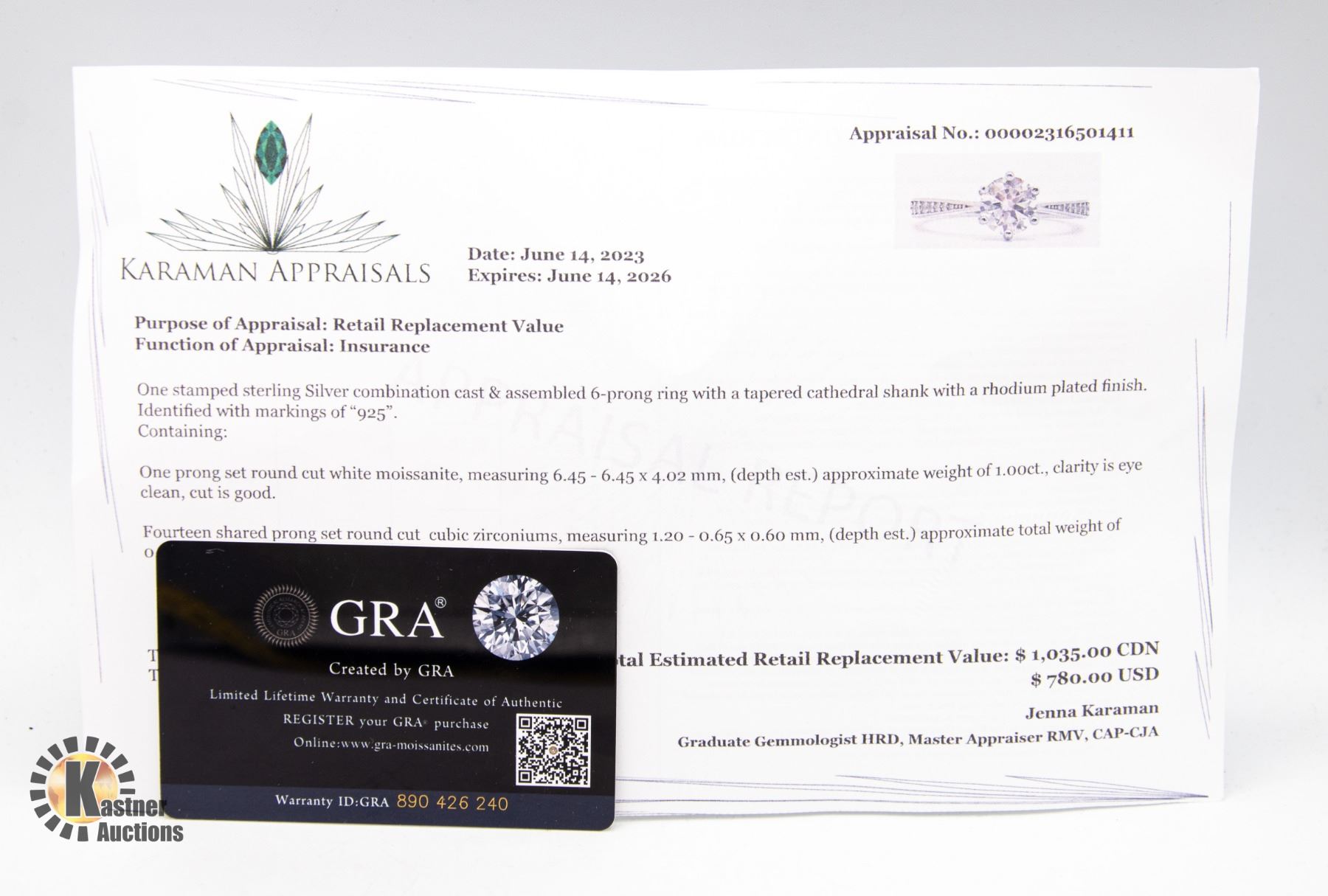 GRA CERTIFIED VVS D MOISSANITE, 1.00 CARAT WITH