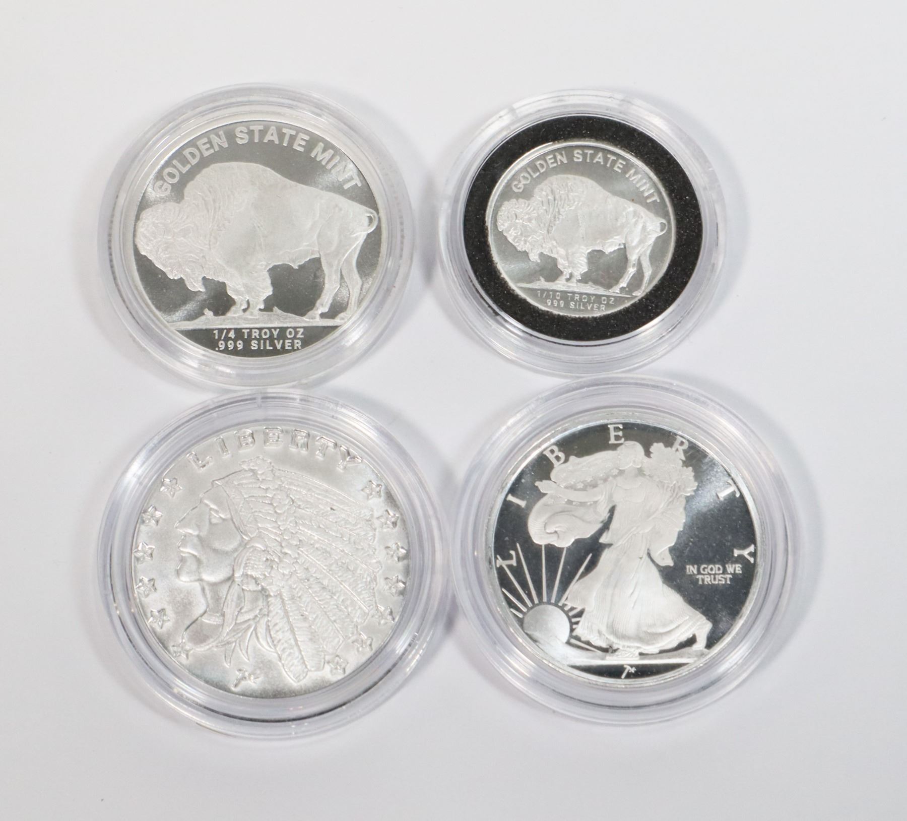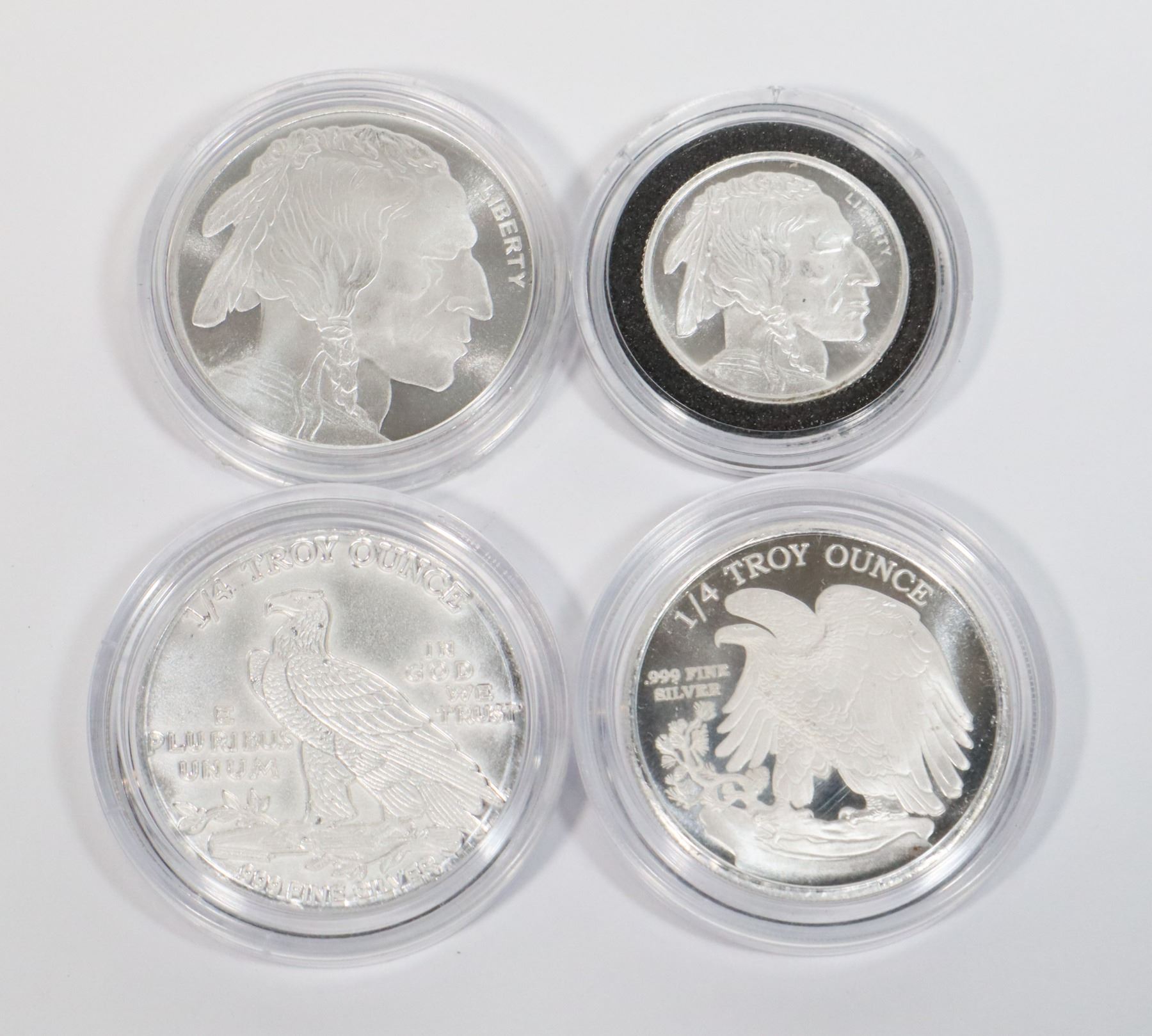 1/4-OZ SILVER EAGLE, 1/4-OZ BUFFALO ROUND, 1/4-OZ INCASE INDIAN, 1/10-OZ BUFFALO . ALL IN CAPSULES