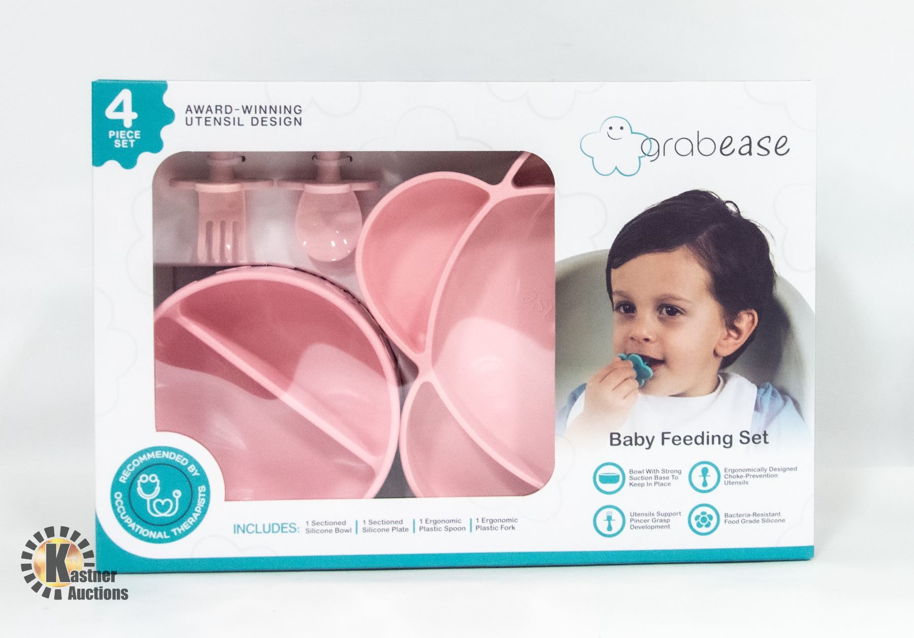 GRAB EASE SILICONE BOWL PLATE CUTLERY SET PINK