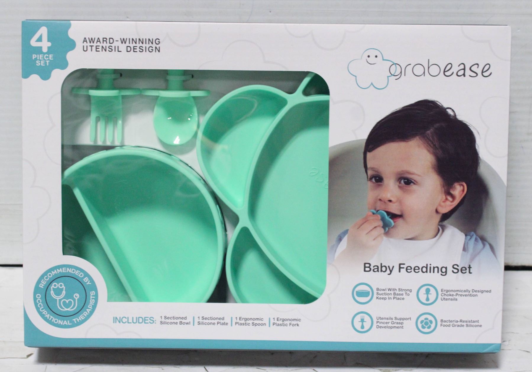 GRABEASE SILICONE BOWL PLATE CUTLERY SET GREEN