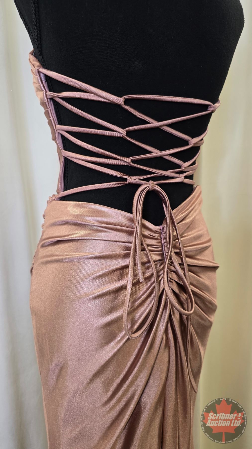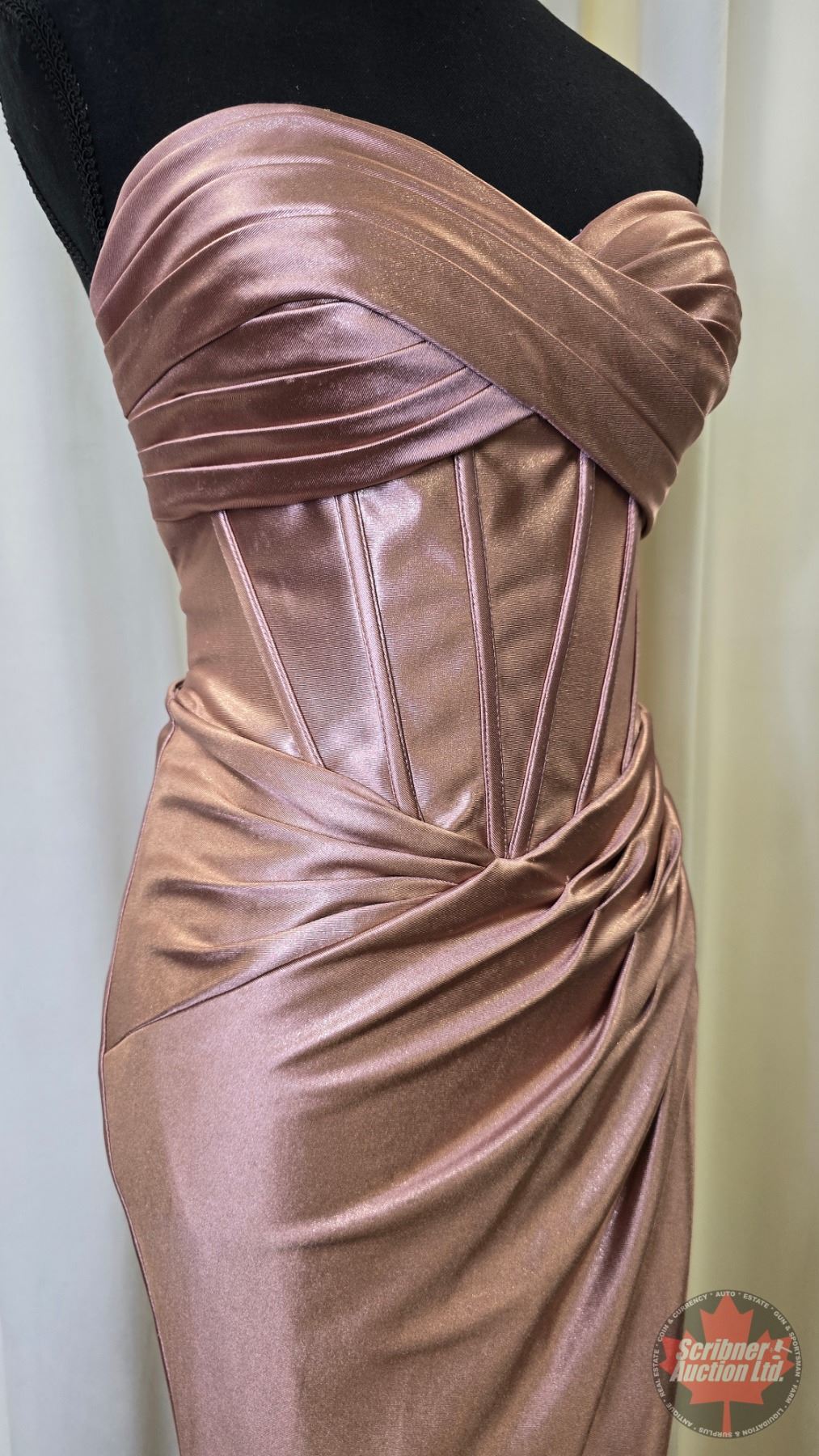 (Listing & Descriptions are a GUIDE ONLY and are subject to changes, errors, additions or deletions. The majority of dresses were fitted/cinched/clamped to mannequins for auction catalog pictures. See Tags in Pictures for Dress / Item Details if tagged. Many or all of the dresses have been tried on in the store as normal retail activity. Winning bidders may want to consider Drycleaning. Please use the provided pictures to satisfy yourself to the Conditions. There will NOT be garment bags provided, please bring your own when picking up dresses after the Auction concludes. Please bring help or assistance to load out store fixtures. Please Read & Understand All Terms & Conditions for this Auction Sale. There is designated dates & times for pick ups after the Auction.)