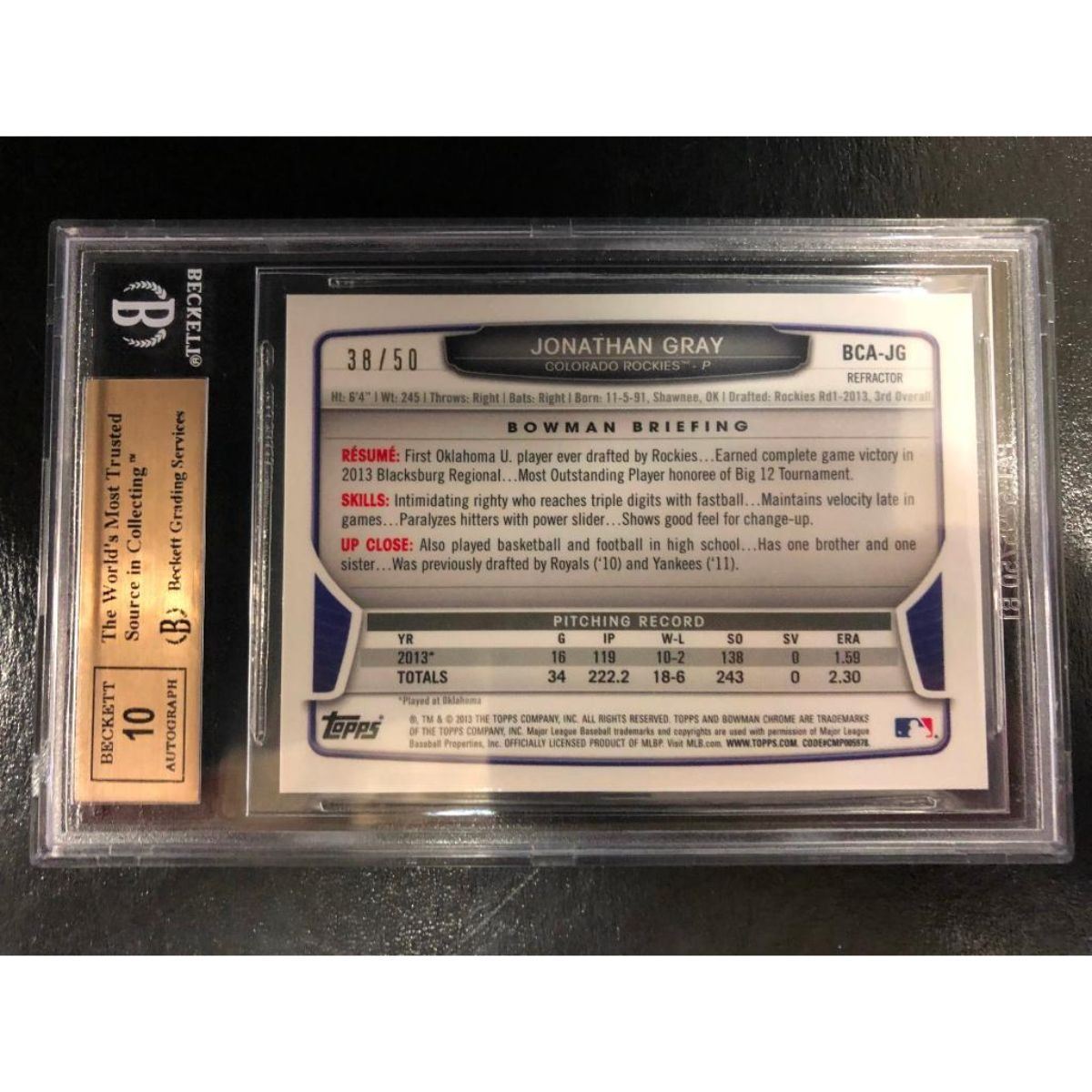 GRADE 2013 BOWMAN CHROME BLACK WAVE Limited 38/50 EDITION Refractor JONATHAN GRAY ROOKIE RC GRADED PERFECT 10 Auto. View Photos For Further Details.