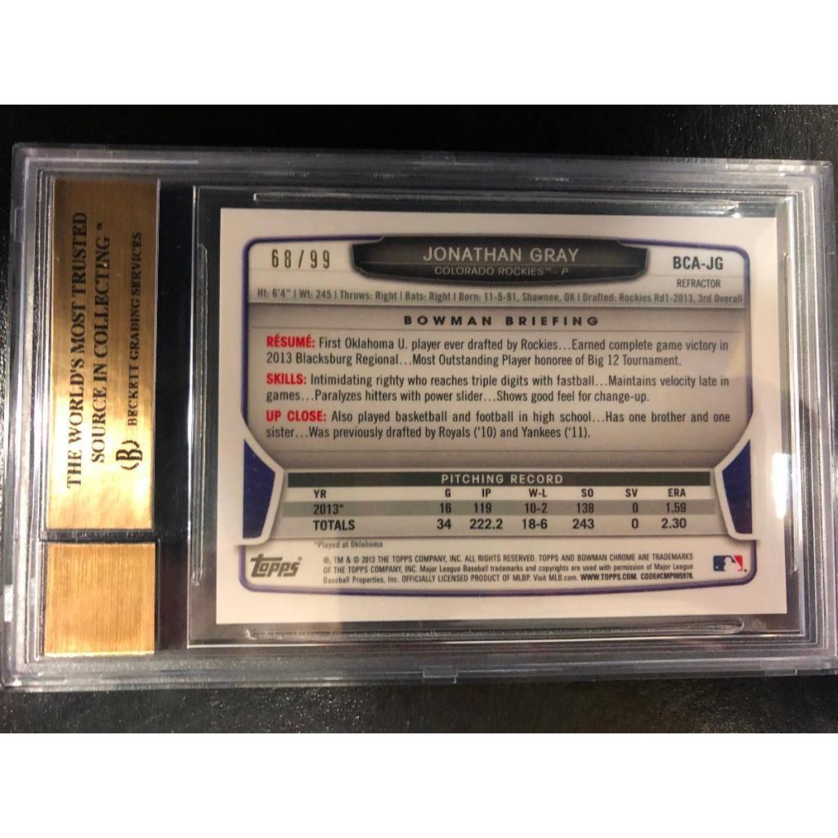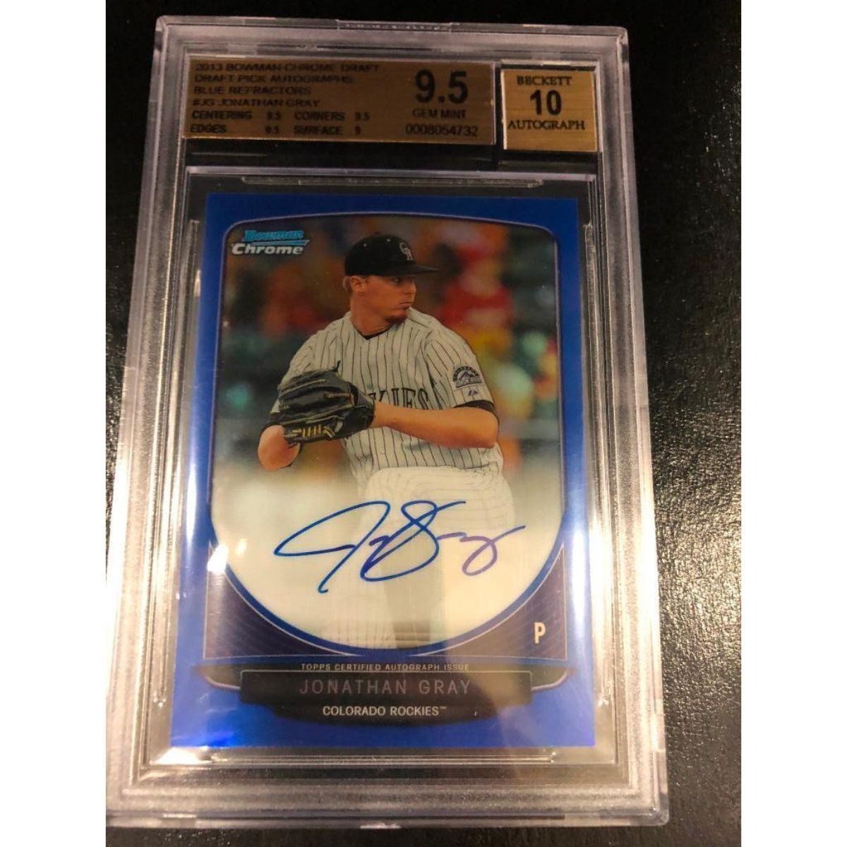 GRADE 2013 BOWMAN CHROME BLUE FOIL LIMITED EDITION 68/99 Refractor JONATHAN GRAY ROOKIE RC GRADED 10 Auto. View Photos For Further Details.