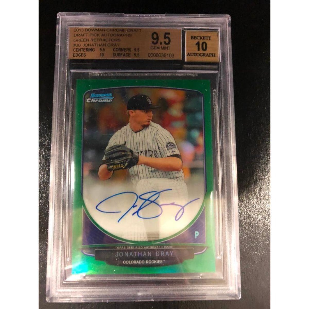 GRADE 2013 BOWMAN CHROME LIMTED EDITION 43/75 GREEN FOIL Refractor JONATHAN GRAY ROOKIE RC GRADED 10 Auto GEM MINT 9.5. View Photos For Further Details.