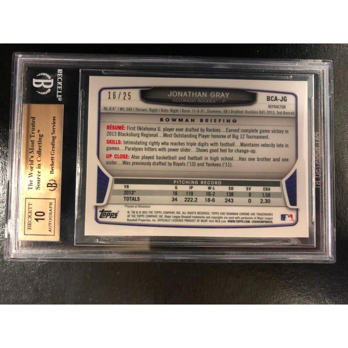 GRADE 2013 BOWMAN CHROME ORANGE FOIL LIMITED EDITION 16/25 Refractor JONATHAN GRAY ROOKIE RC GRADED 9.5 GEM MINT. View Photos For Further Details.