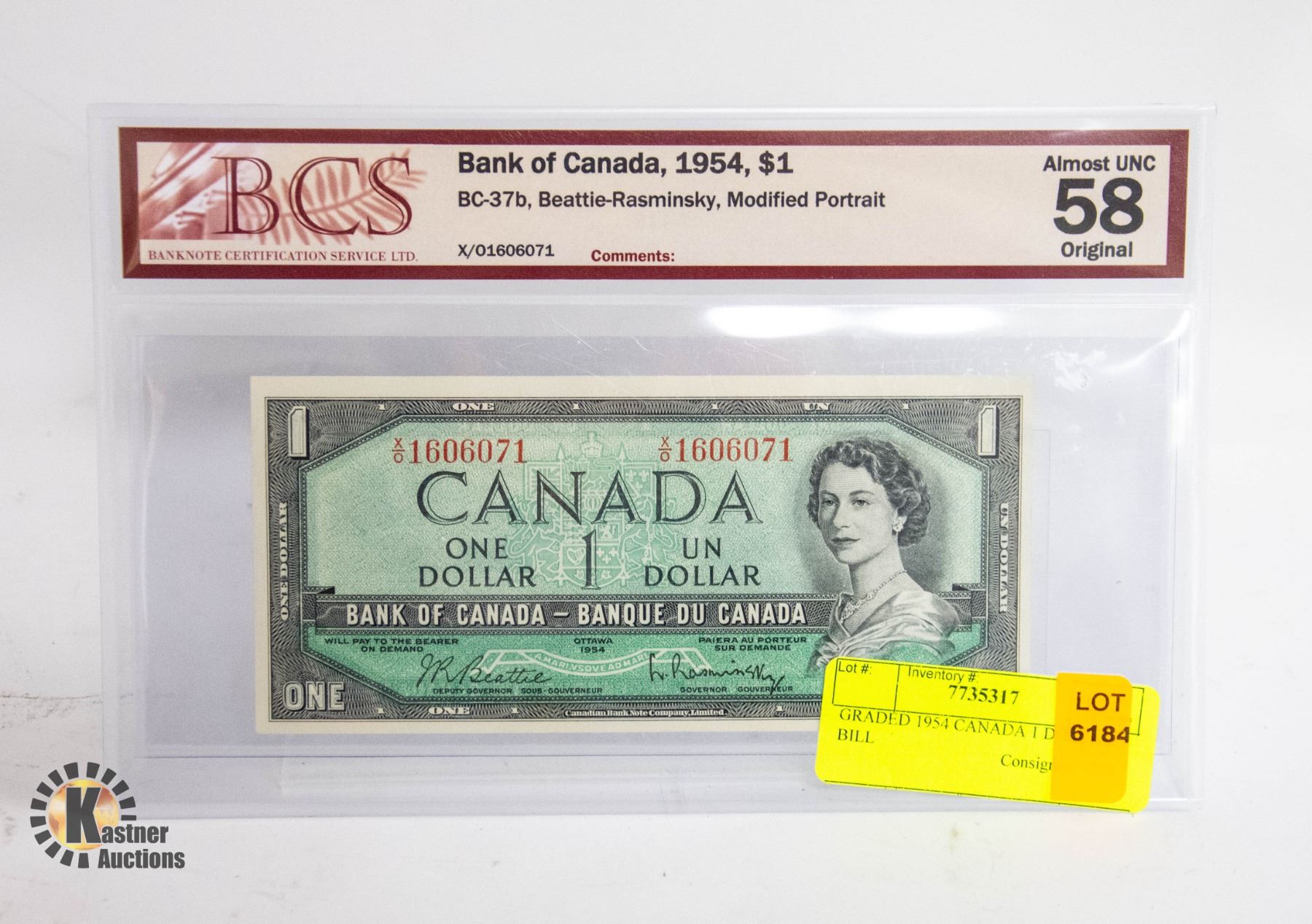GRADED 1954 CANADA 1 DOLLAR BILL