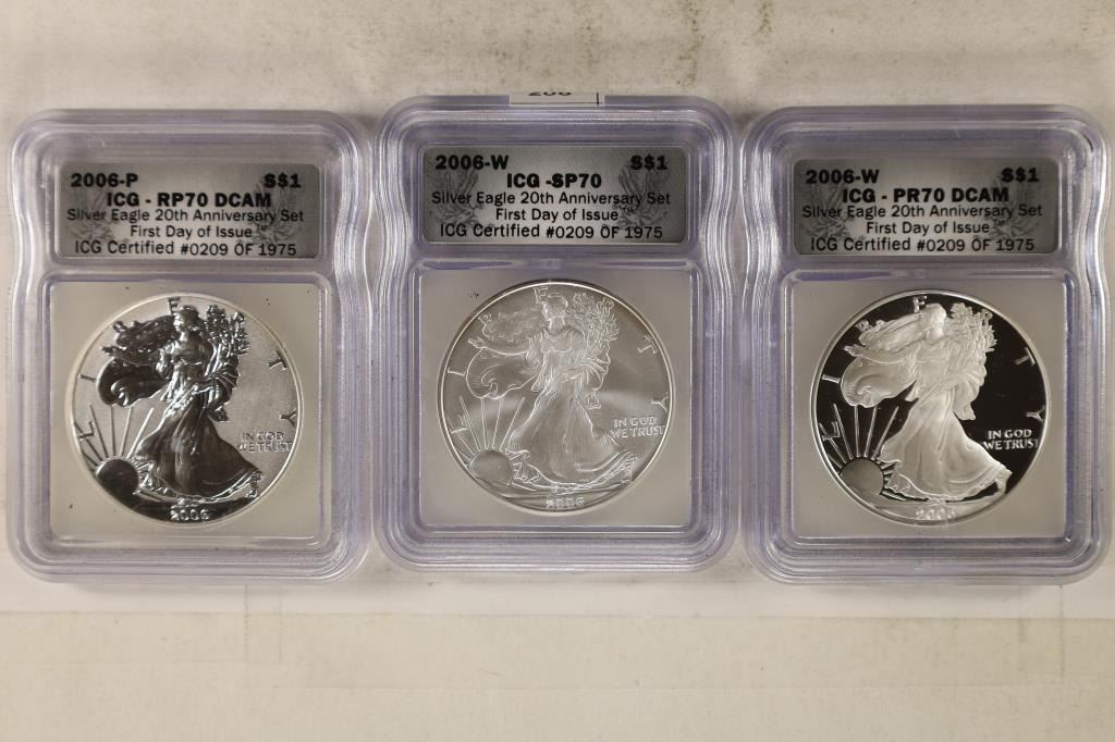 SET CONTAINS: 2006-W ICG SP70, 2006-P ICG RP70 DCAM AND 2006-W ICG PR70 DCAM ALL 1ST DAY ISSUE COINS