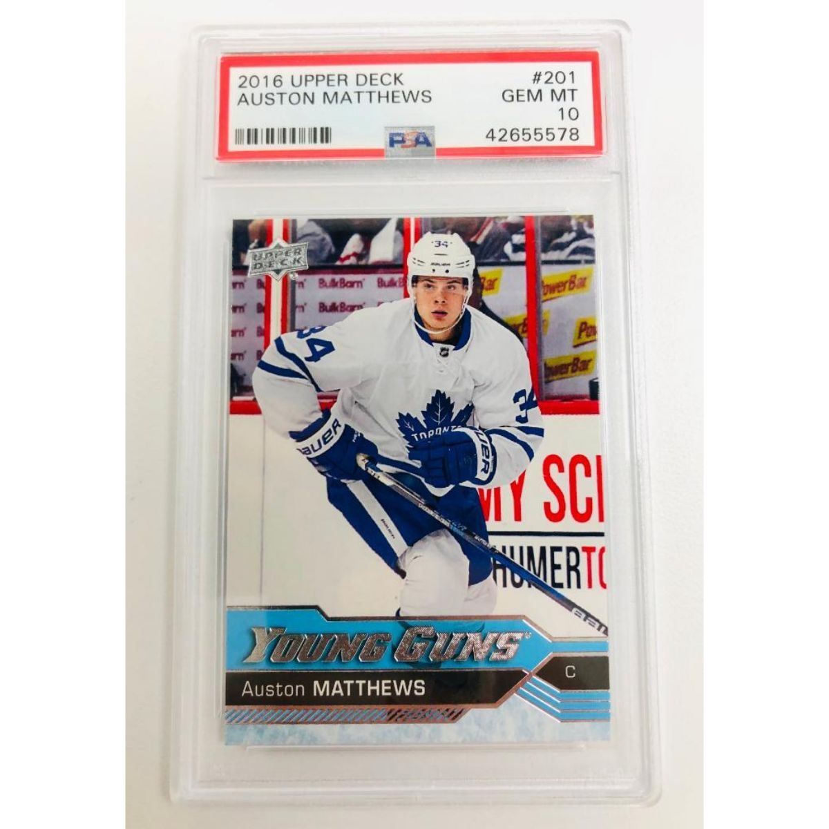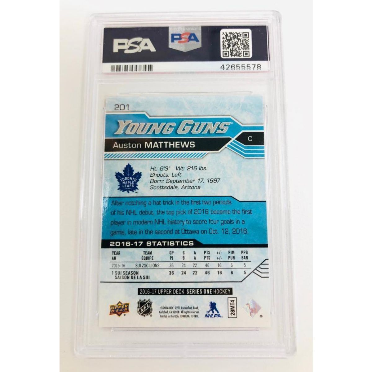 A Professionally Graded 2016 Upper Deck Young Guns #201 Toronto Maple Leafs Auston Matthews Rookie Card. Professionally Graded By PSA Grading A Perfect; 10 GEM MINT. Please View Photos For Further Details.