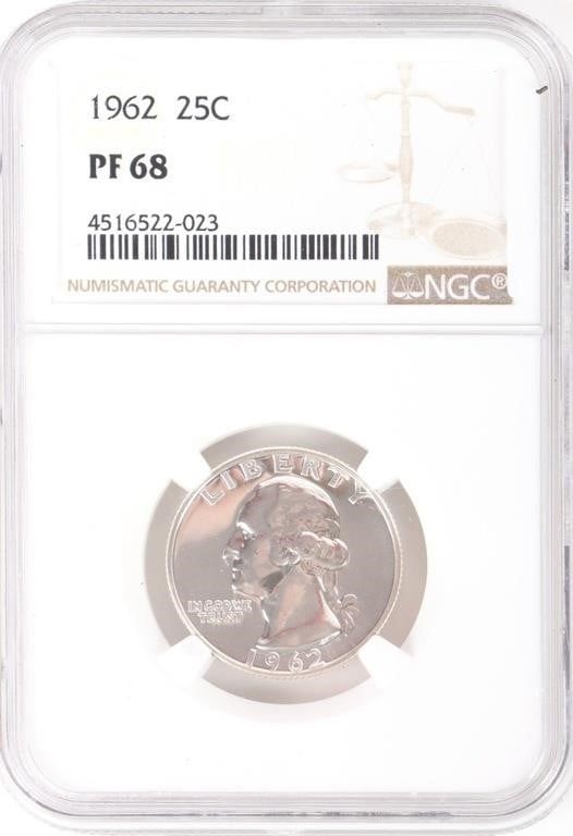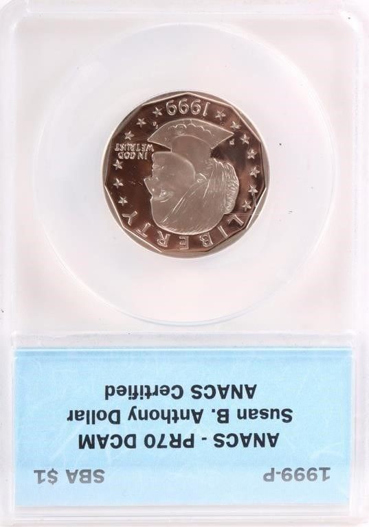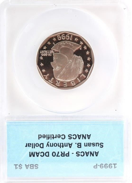 Graded assorted Proof U.S. coins to include one 90% silver 1962 P Proof-68 Washington quarter NGC, and two Proof-70 (Flawless) DCAM 1999 P Susan B. Anthony Dollar ANACS.