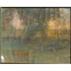 GRAHAM, James Lillie, R.C.A., 1873-1975. "Cattle Grazing at Sunset". Pastel. Pastel. 10" x 12 1/2" - 25.4cm x 31.6cm. $250/350