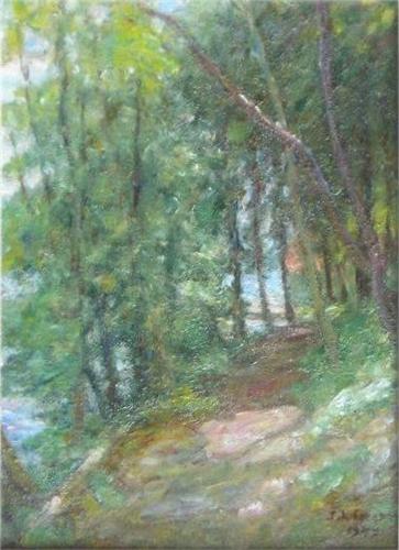 GRAHAM, James Lillie, R.C.A., 1873-1975. "Forest Path". Huile sur panneau, signée et datée "1948". Oil on board, signed and dated "1948". 12" x 8 3/4" - 30.4cm x 22.2cm.
