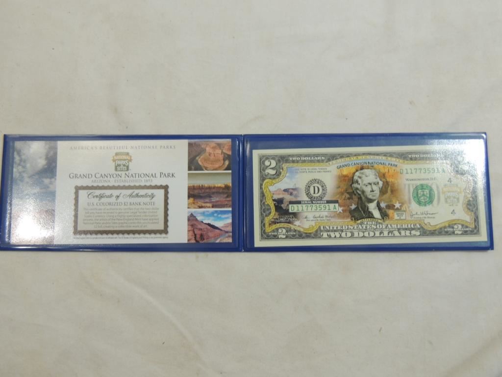 US COLORIZED $2 BANK NOTE, GRAND CANYON NATIONAL PARK ARIZONA CURRENCY BILL AS SHOWN SEE PHOTO FOR MORE DETAILS.