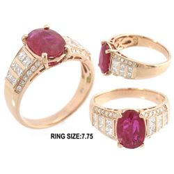 3.02 TCW 14K ROSE GOLD RUBY OVAL & DIAMOND RING