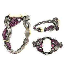 2.25 TCW DIAMOND & RUBY 3 RING PALM BANGLE 0.925 Silver